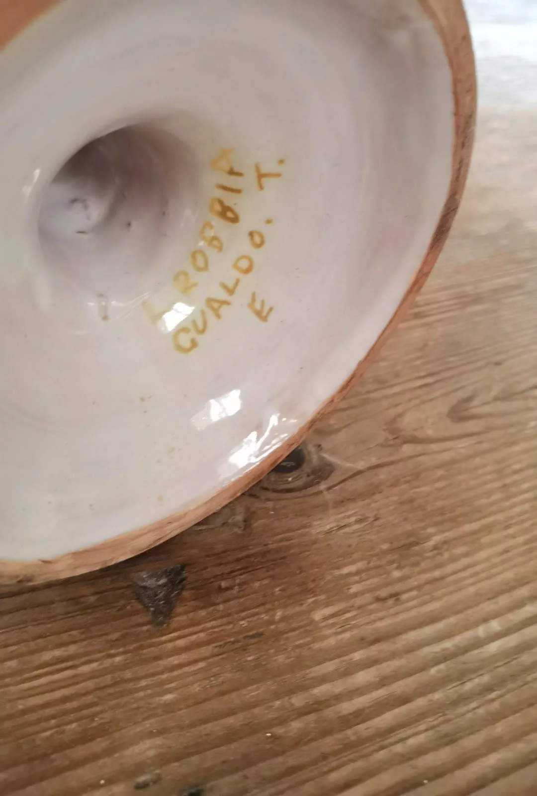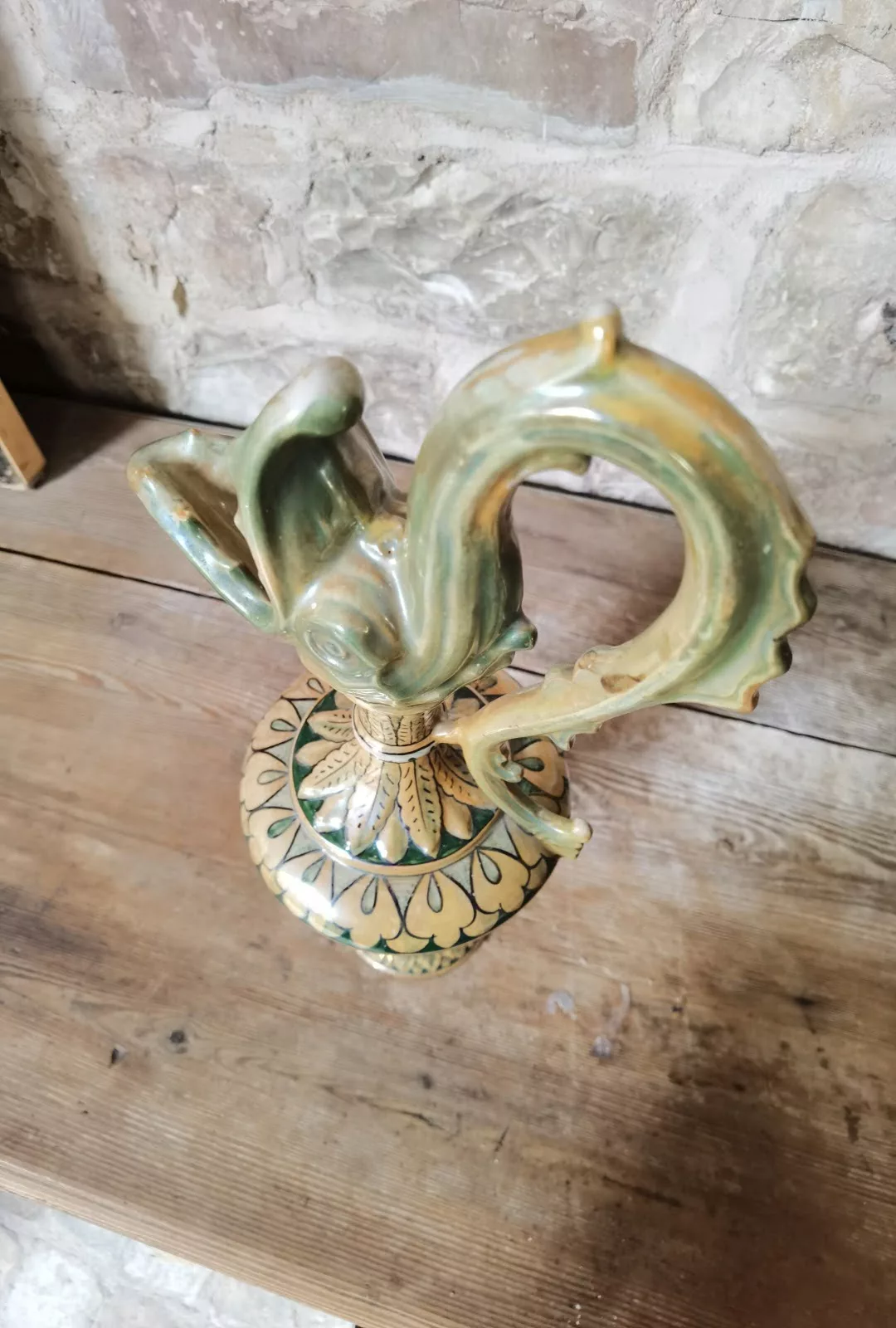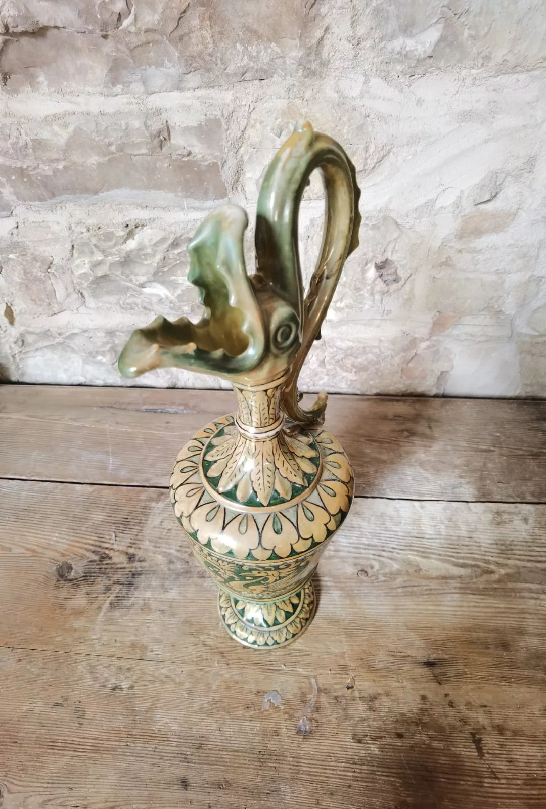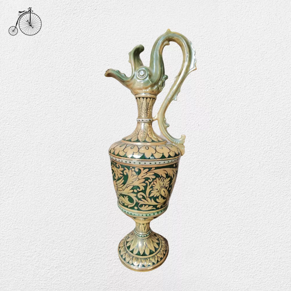 Anfora Pompeiana, realizzato da Luca dalla Robbia, Gualdo Tadino, degli anni ’40, con lustro oro su fondo verde, marcato dalla società.