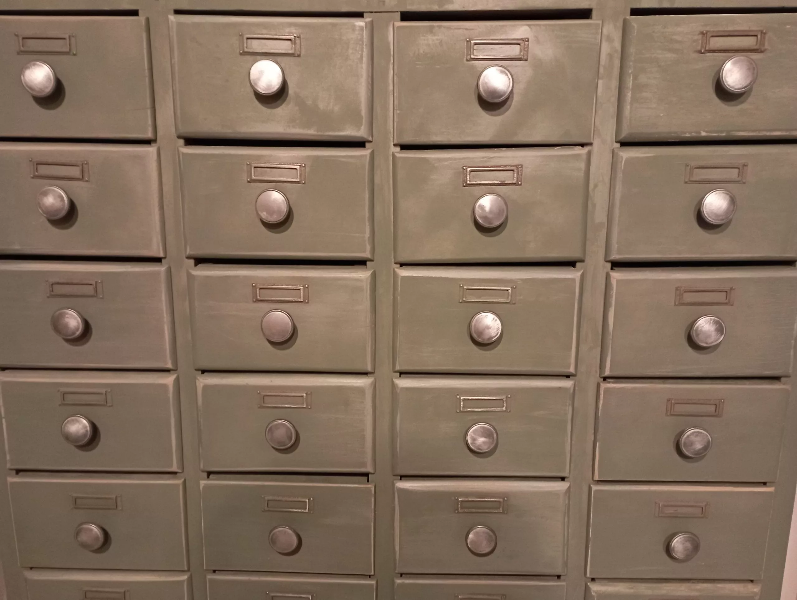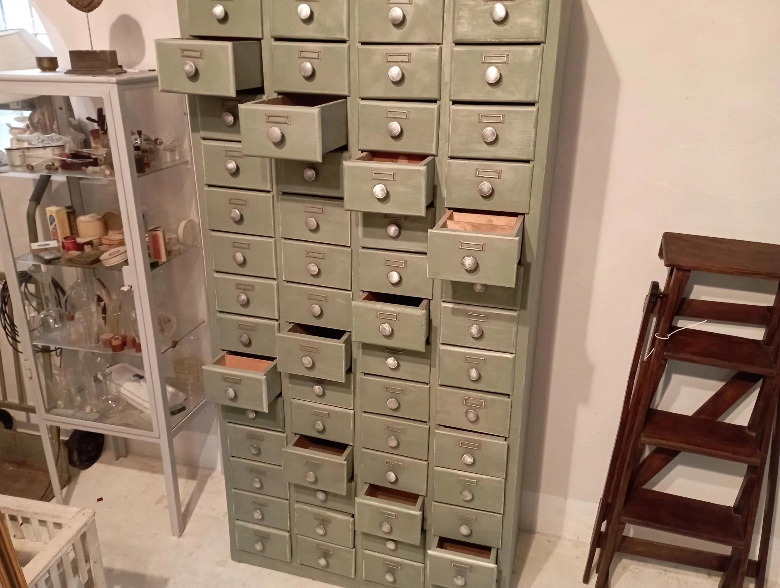 Cassettiera da Ferramenta stile Industrial per minuteria. Scompartati a 3 con ben 56 cassetti è ottima per l’organizzazione degli attrezzi e altri oggetti.