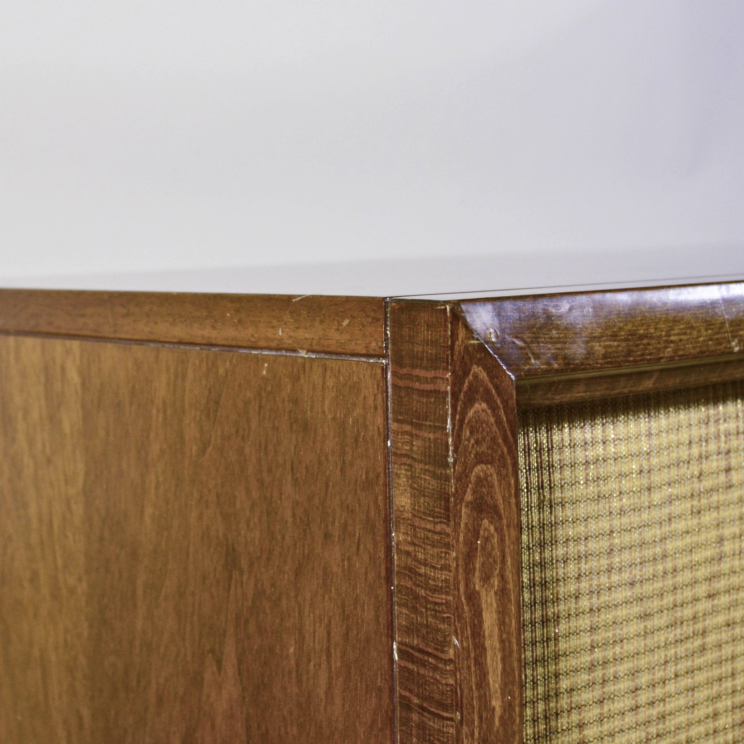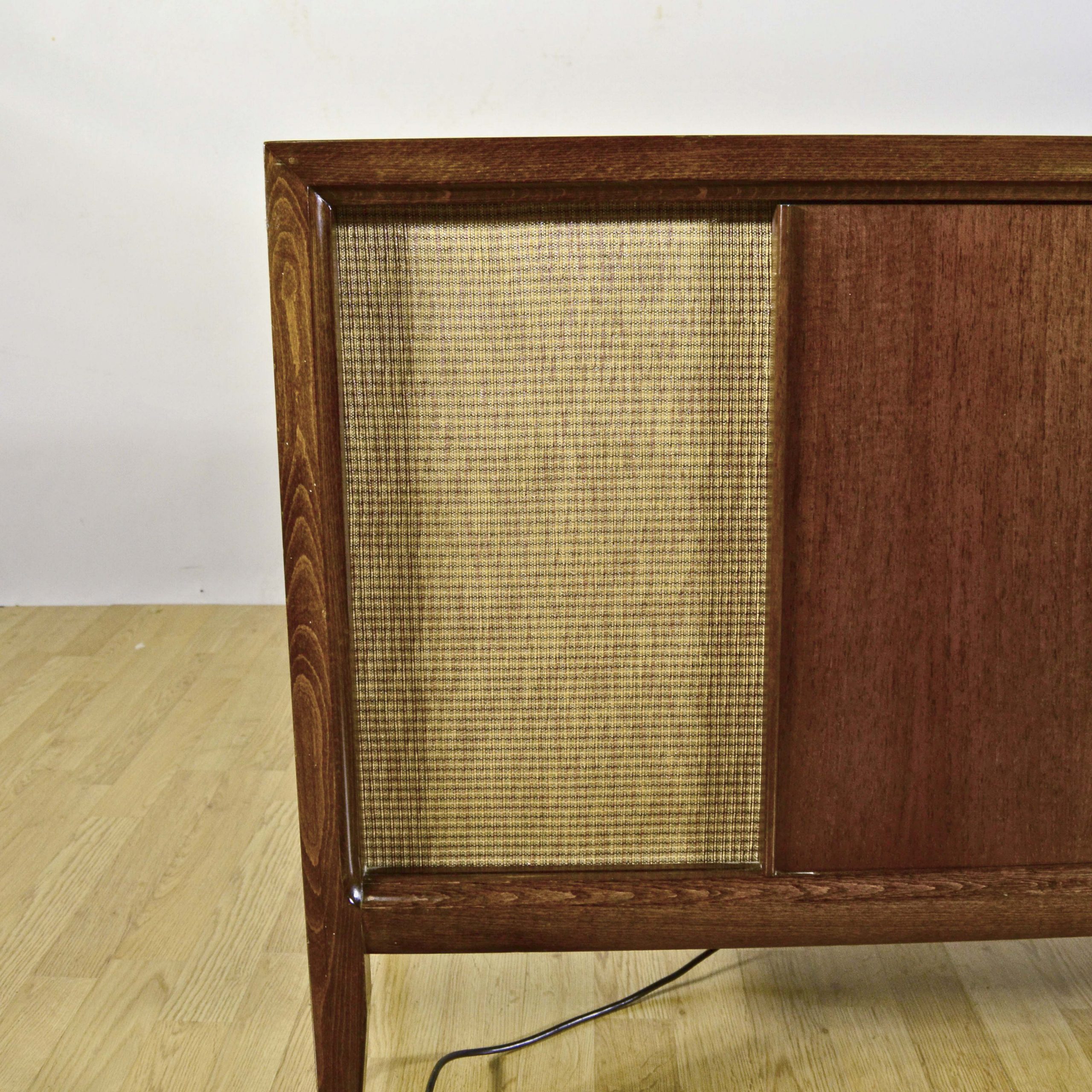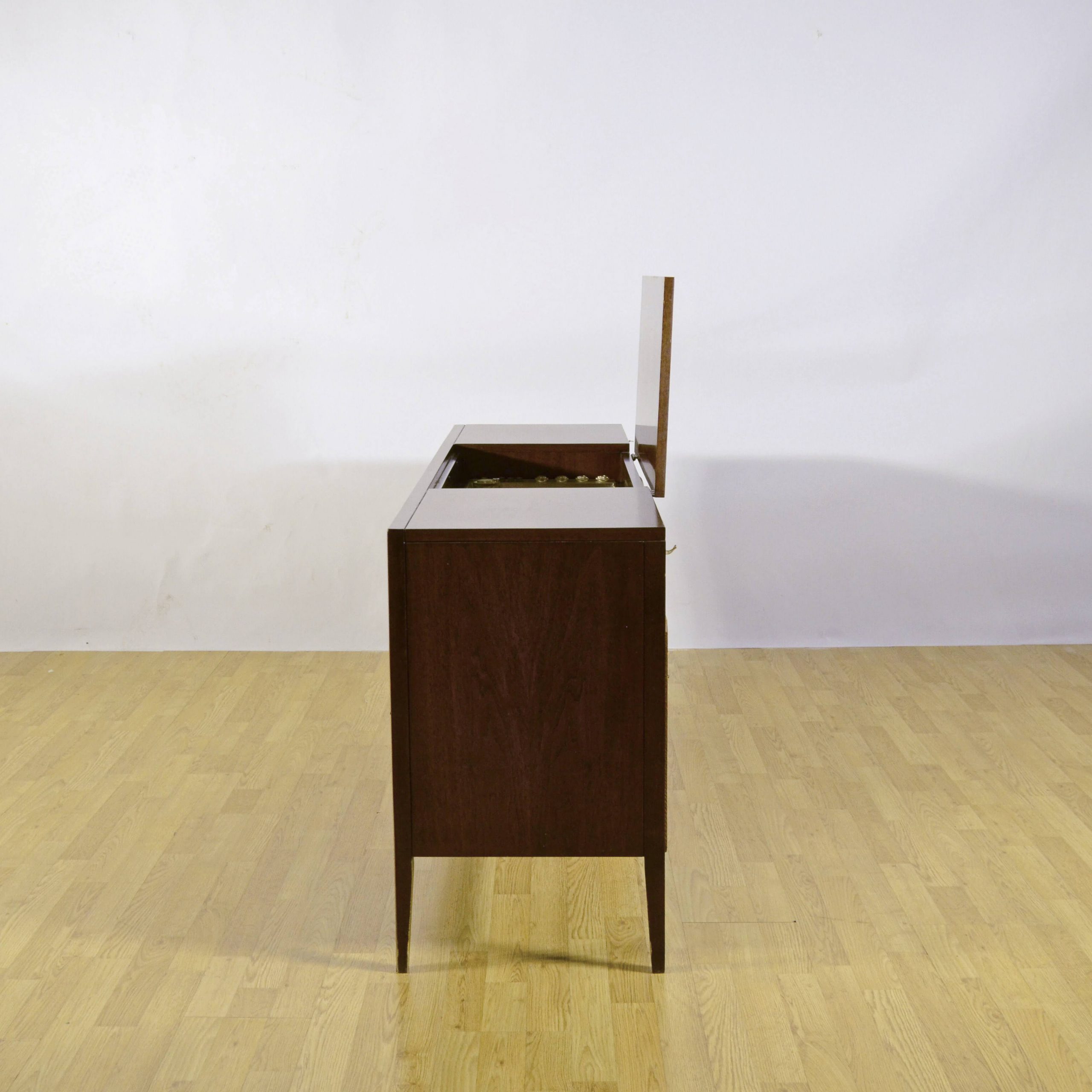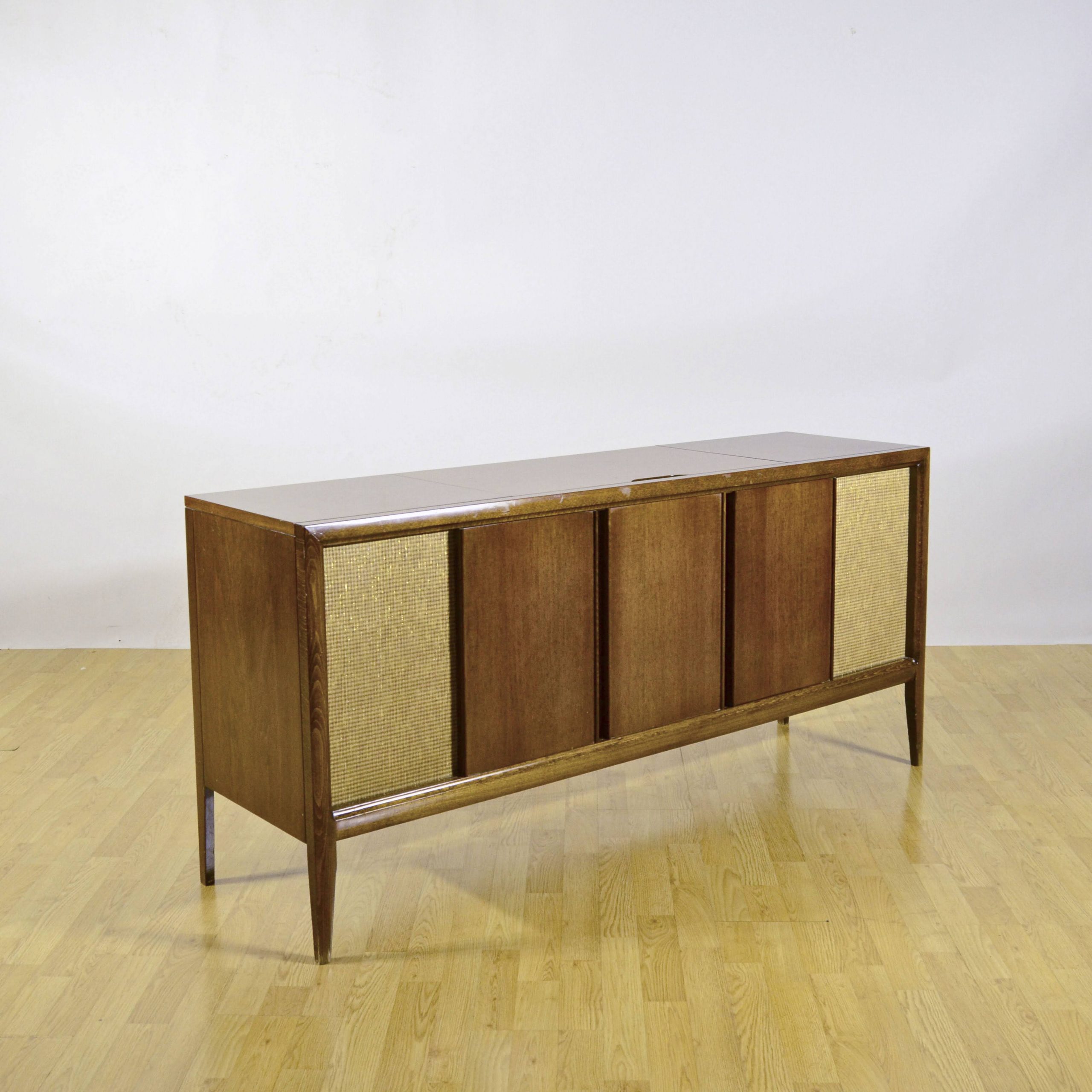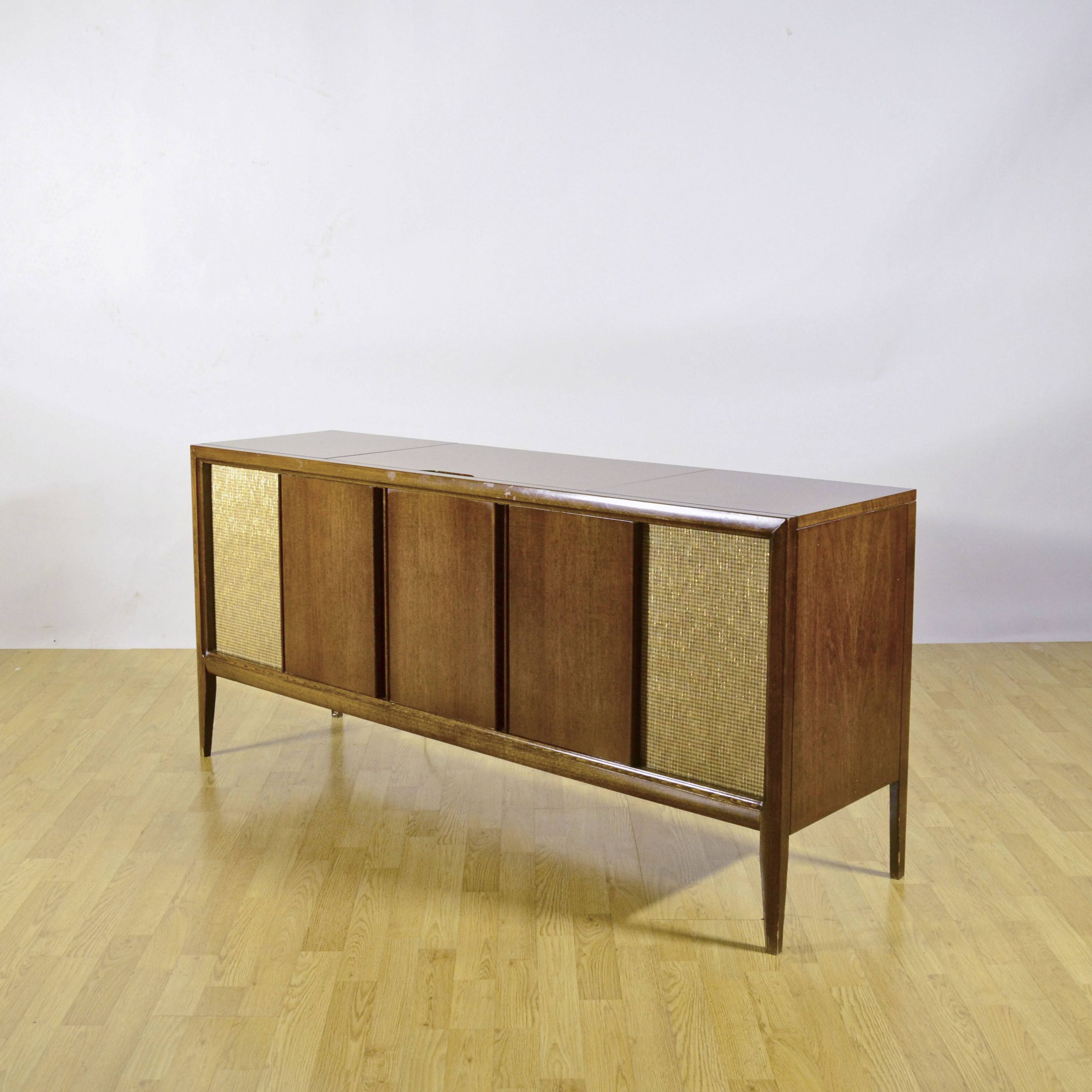Console stereo vintage della Admiral Corporation, modello Solid State 80, realizzata in legno massello con giradischi integrato. Un elegante esempio di design hi-fi d’epoca che unisce qualità sonora e fascino retrò, perfetta per collezionisti e amanti dell’audio vintage.