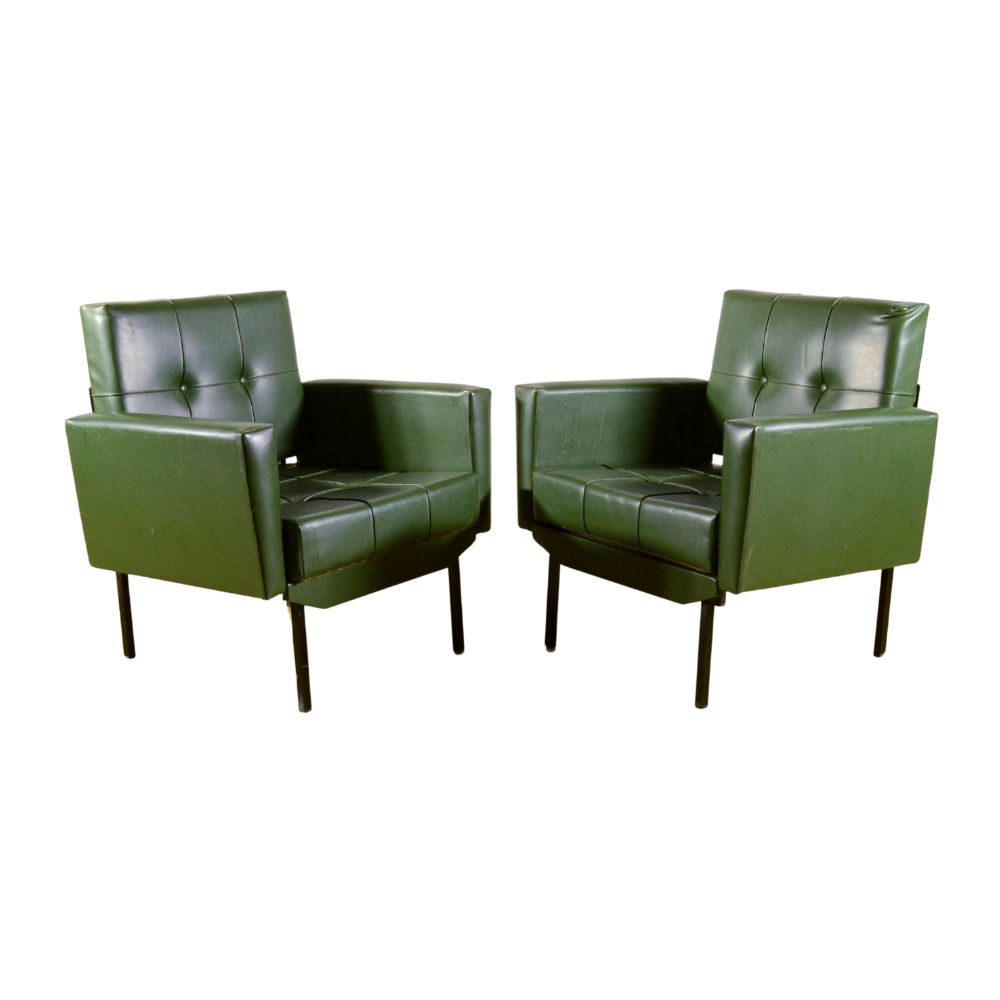 Coppia Poltrone Verdi in Similpelle Anni ’70