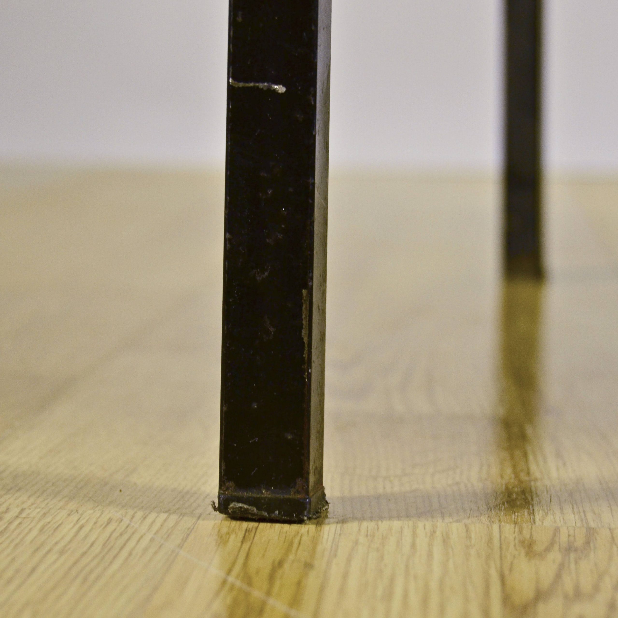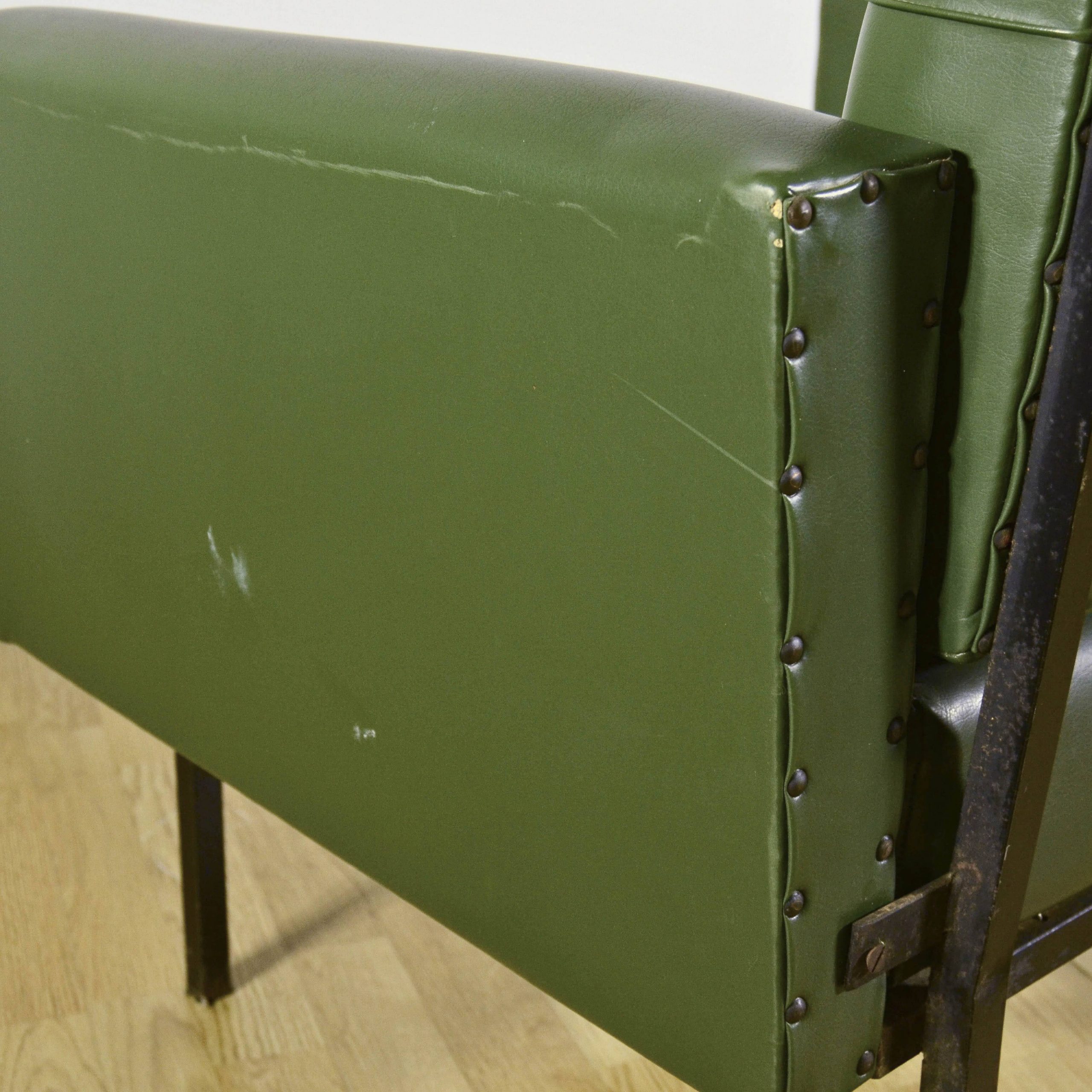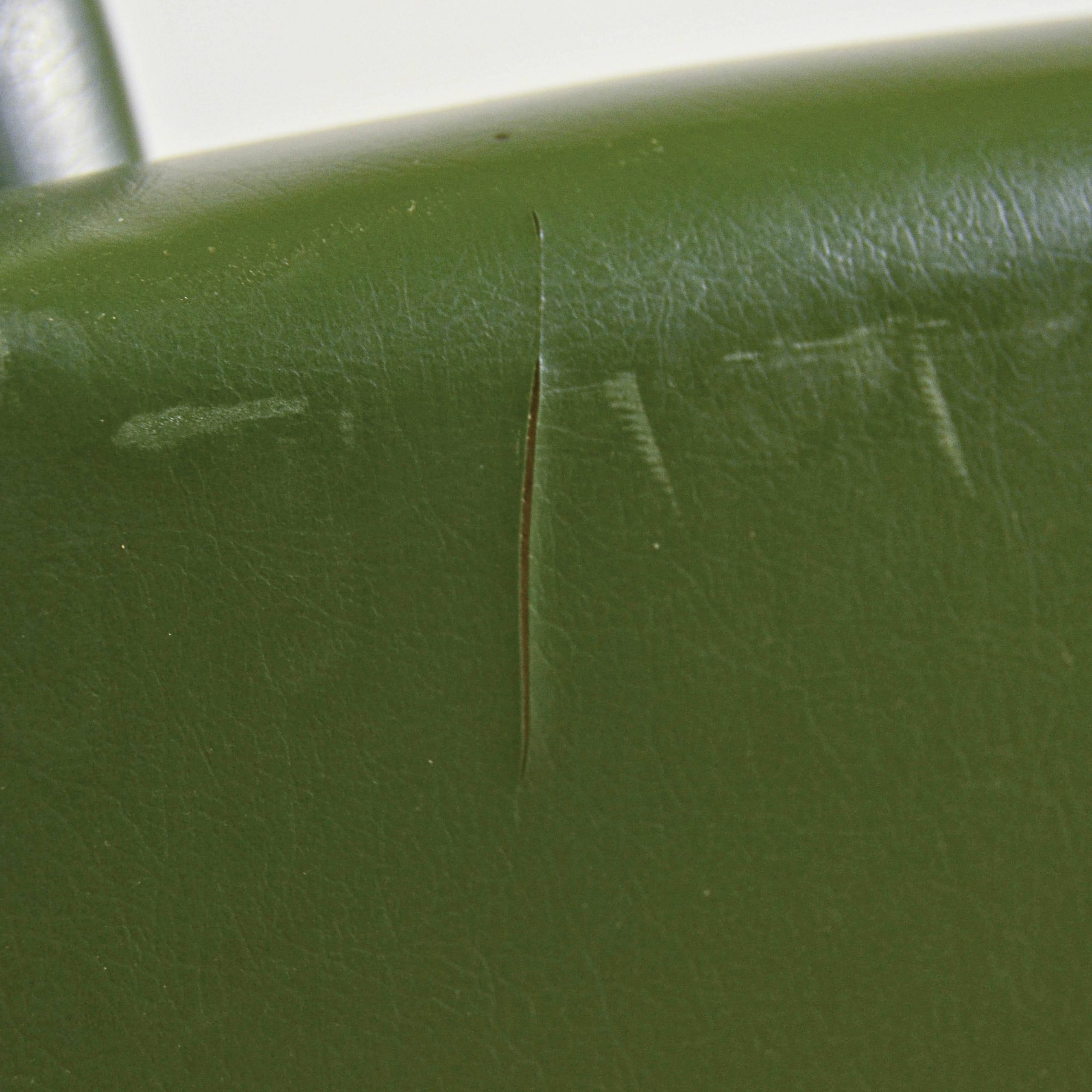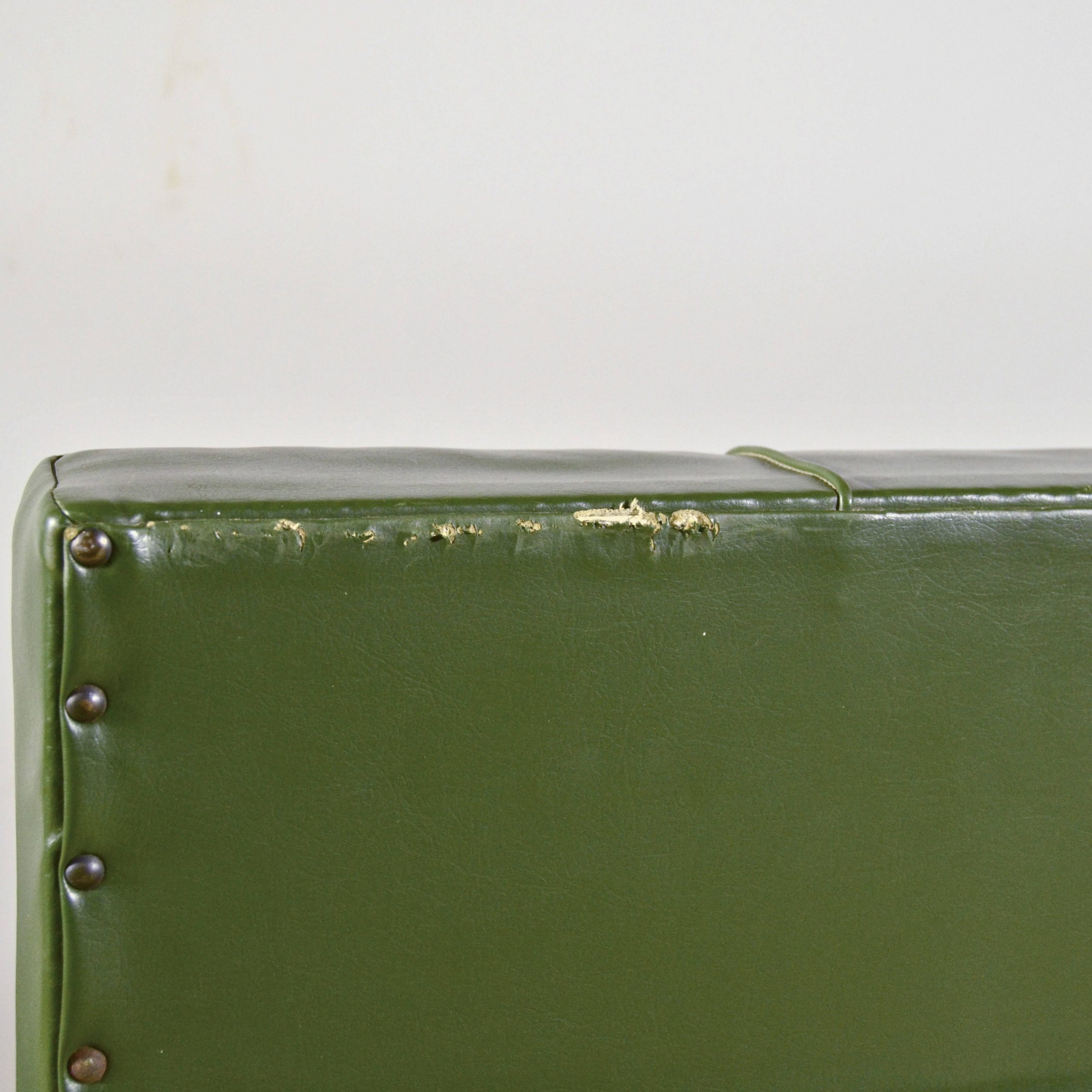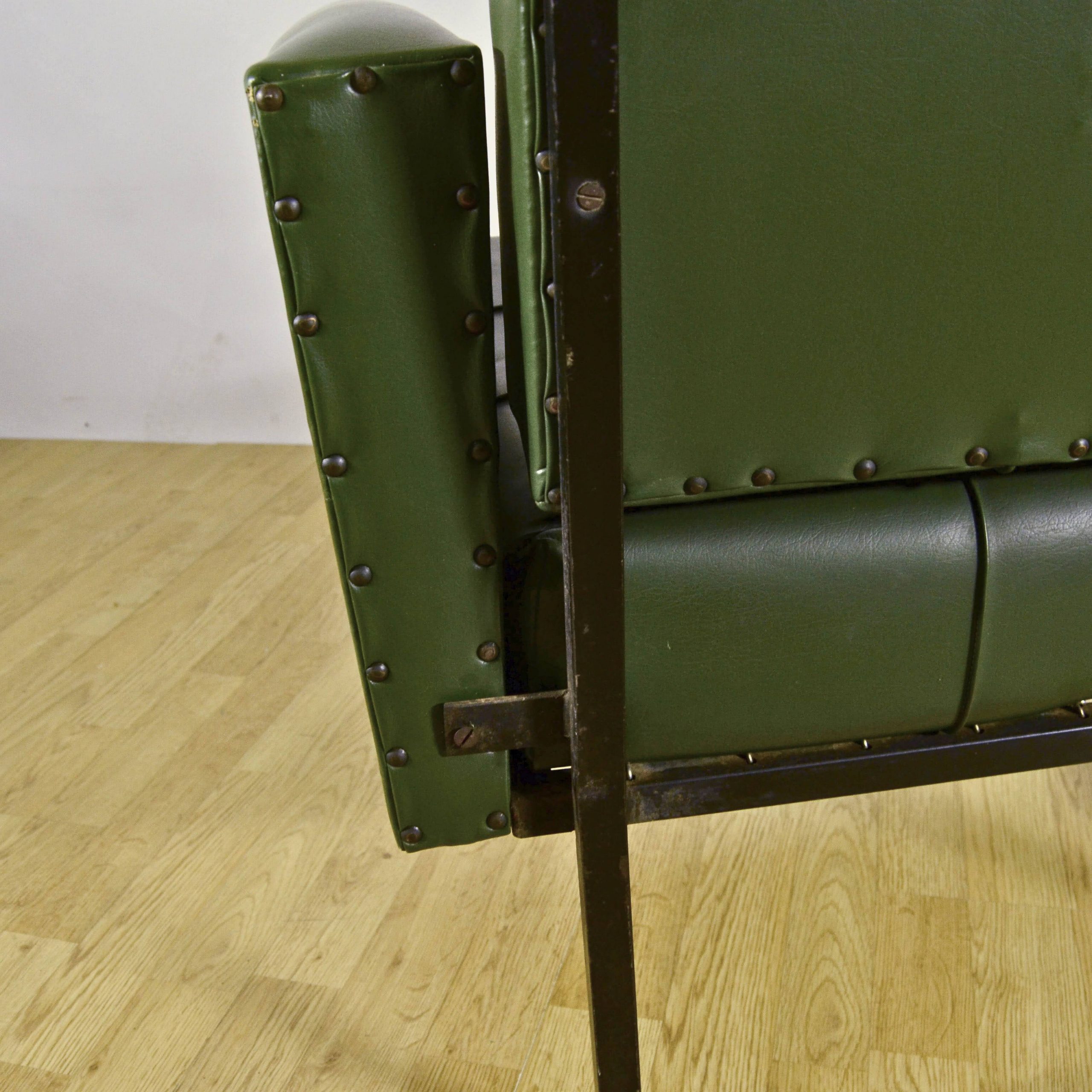 Coppia di poltrone anni ’70 caratterizzate da struttura in metallo e seduta imbottita in gommapiuma rivestita in similpelle verde. Il design dalle linee pulite e la seduta ampia e confortevole le rendono perfette per soggiorni, studi o ambienti in stile Mid-Century.