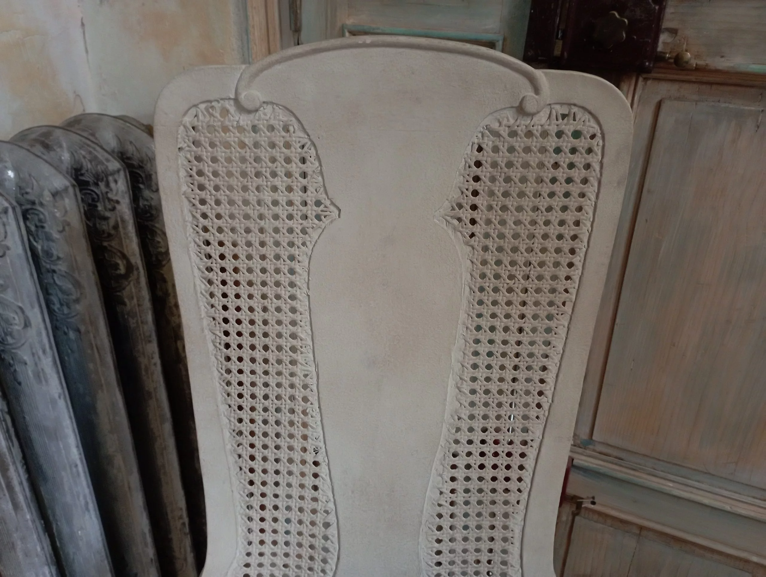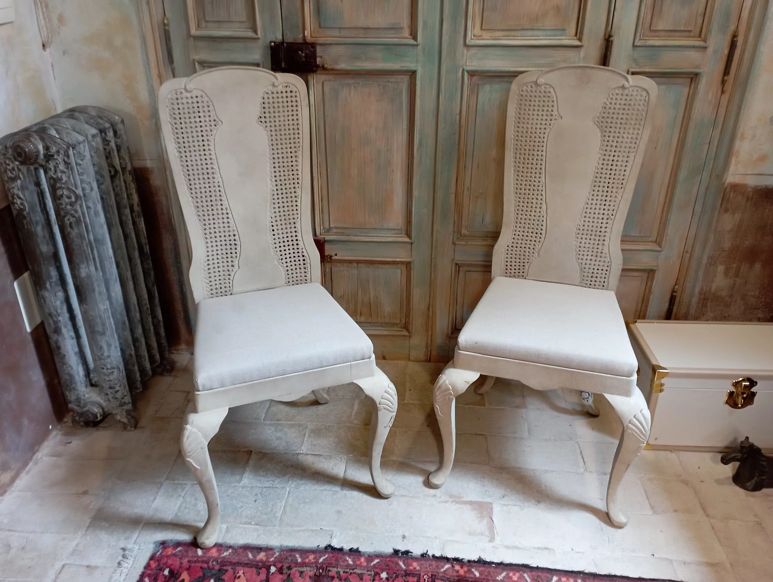 Coppia Sedie Capotavola degli anni ’40 composta da materiali sintetici color bianco e panna. Ottime per aggiungere un pizzico di vintage alla vostra tavola.