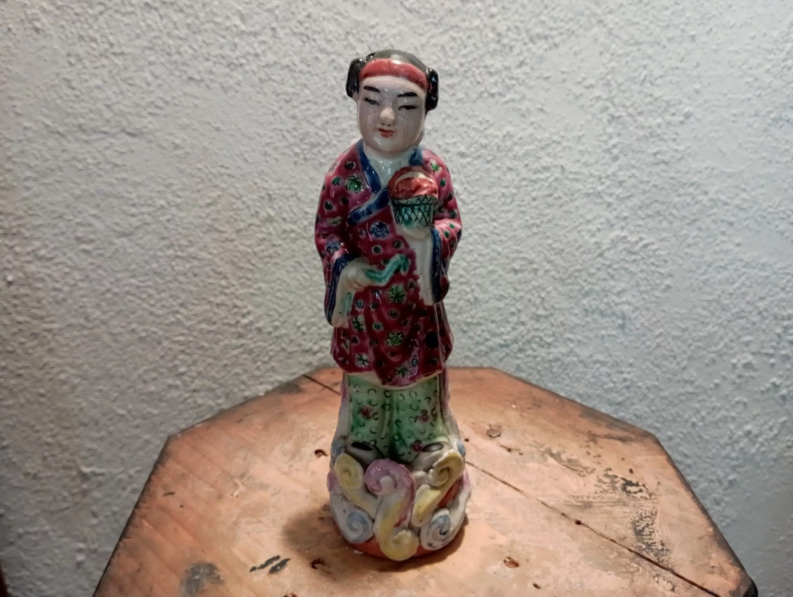 Coppia Statuette Cinesi in porcellana, anni ’60 circa, di ottima fattura e dipinte a mano, raffiguranti un uomo ed una donna di nobili origini.