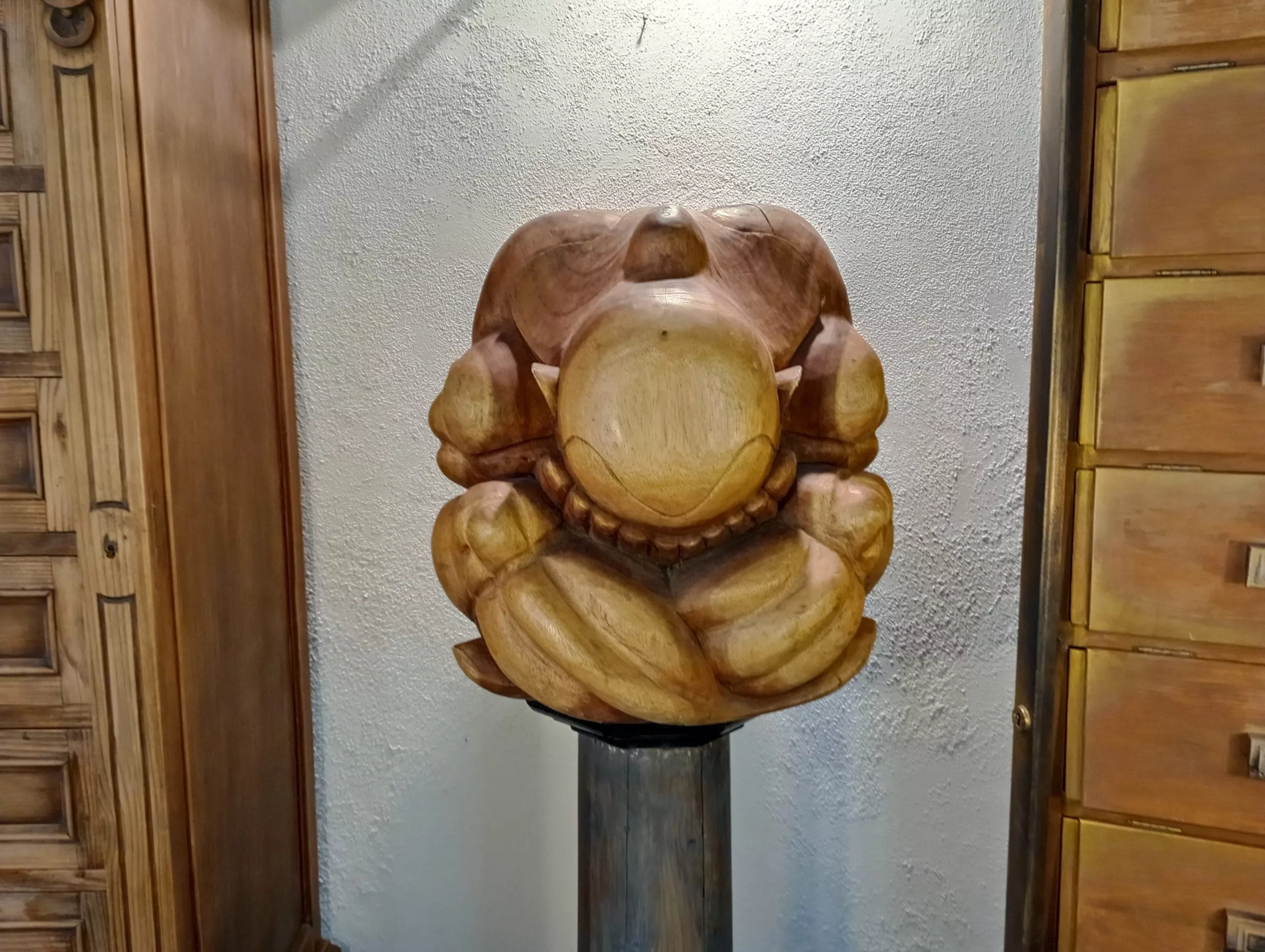 Grande Yogi Pensatore o Piangente, in legno massiccio, è un’opera maestosa e imponente che cattura l’essenza della contemplazione e della spiritualità.
