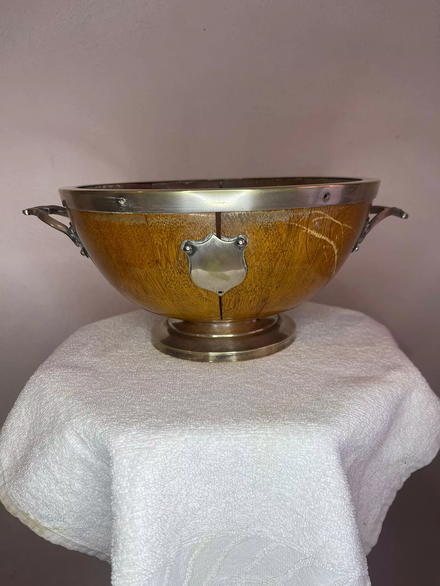 Insalatiera in legno, del 1920 circa, con porta stemmi, è un bellissimo pezzo da esposizione o da utilizzare in qualche pranzo/cena a tema.