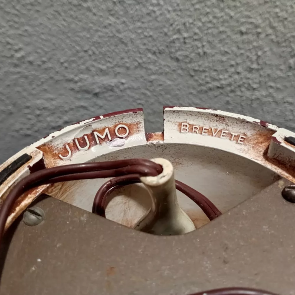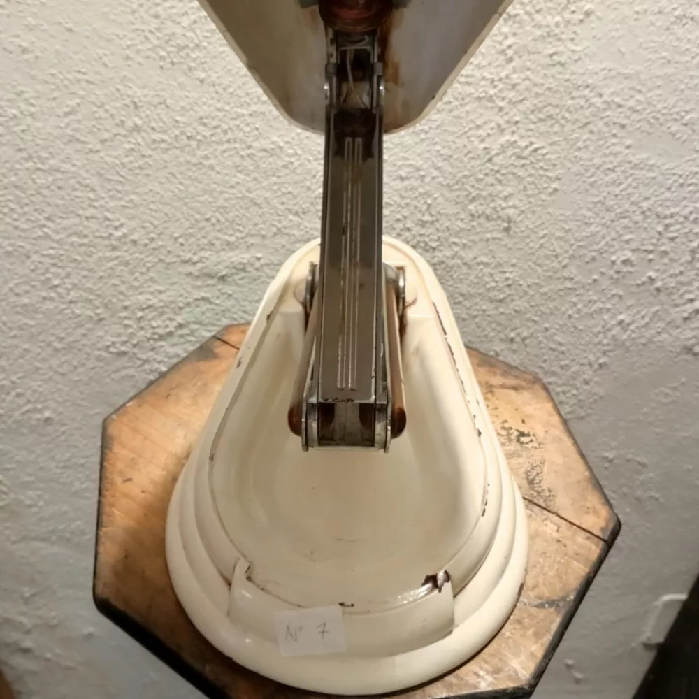 Rarissima lampada vintage JUMO dal design Deco’ anni ’30, in Bakelite verniciata di bianco che presenta dei segni di usura sulla vernice.