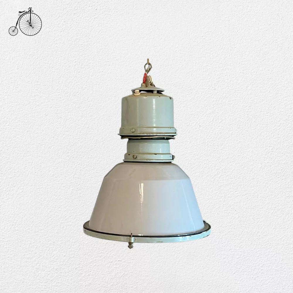 Lampadario Industrial a sospensione, realizzato in metallo smaltato e presenta sia con vetro di copertura che senza, tipico stile Industrial.