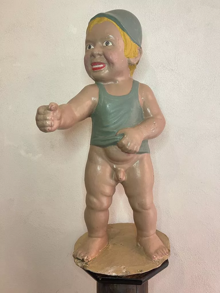 Monello in Cartapesta, degli anni ’30, molto probablimente esposto in qualche vetrina a scopo pubblicitario, è un pezzo da collezione.