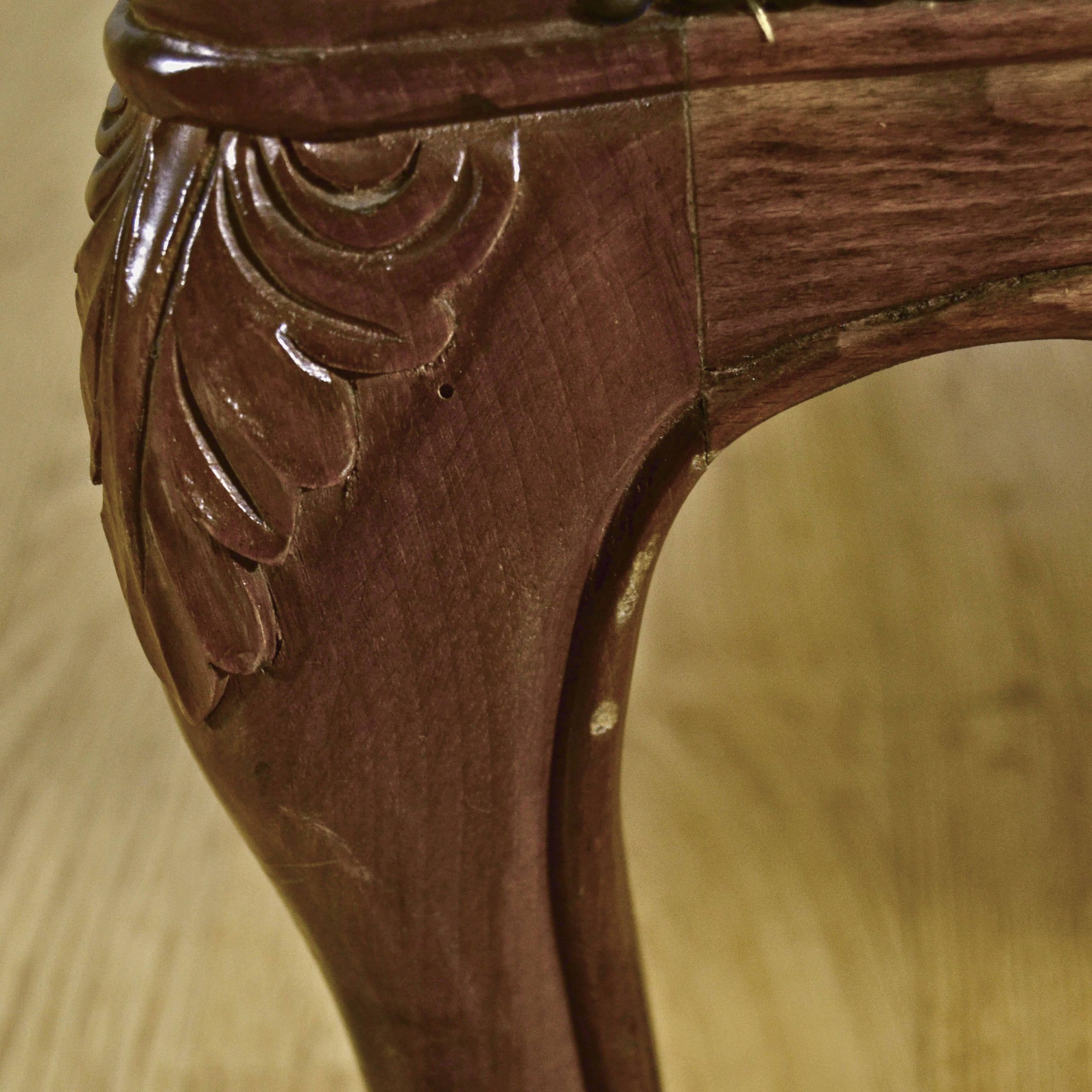Le linee sinuose, i braccioli ricurvi e la lavorazione a bottoni dello schienale esprimono tutto il fascino e la ricercatezza dell’arredo ottocentesco. Confortevoli e di grande presenza scenica, sono ideali per salotti classici, studi o ambienti d’epoca che richiedono un tocco di prestigio e autenticità.