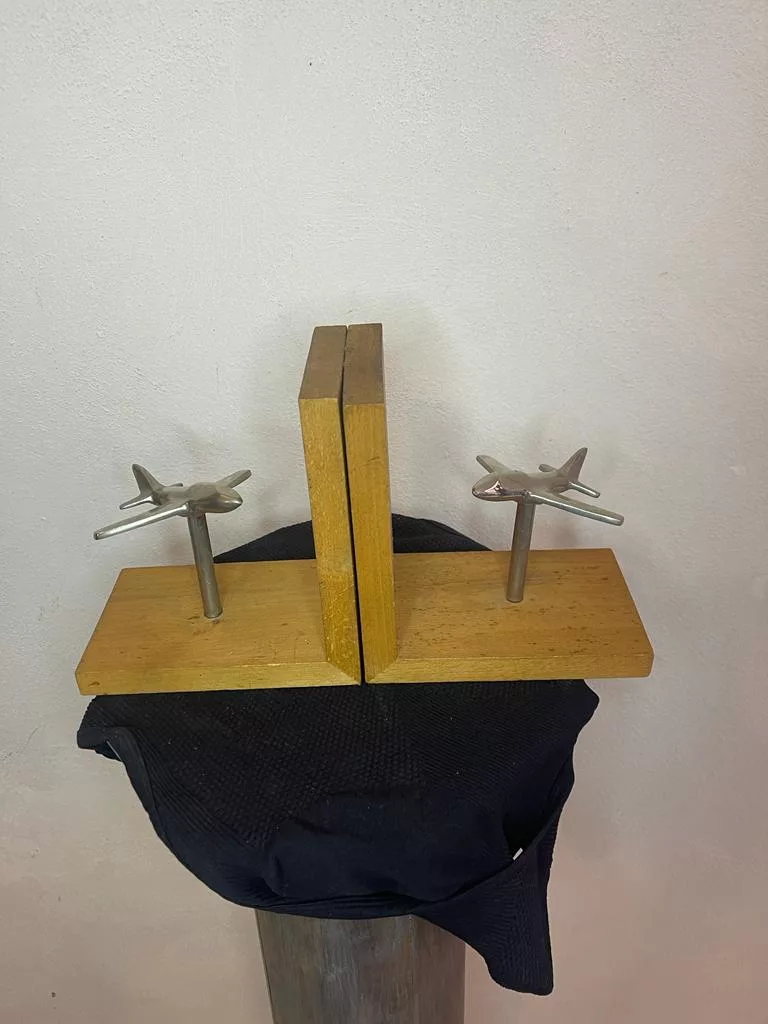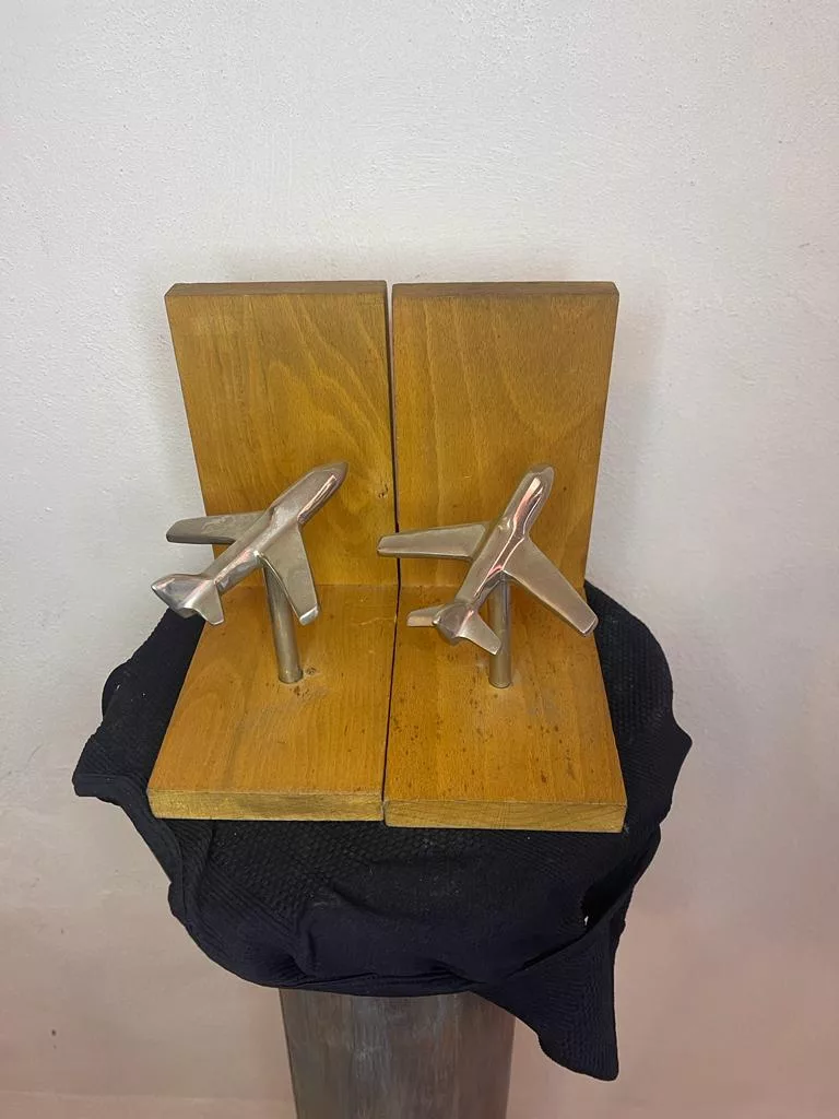 Porta Libri con aerei realizzati in metallo cromato, dei anni ’40 circa, sono dei bellissimi pezzi di creativi di design perfetti per decorare una libreria.