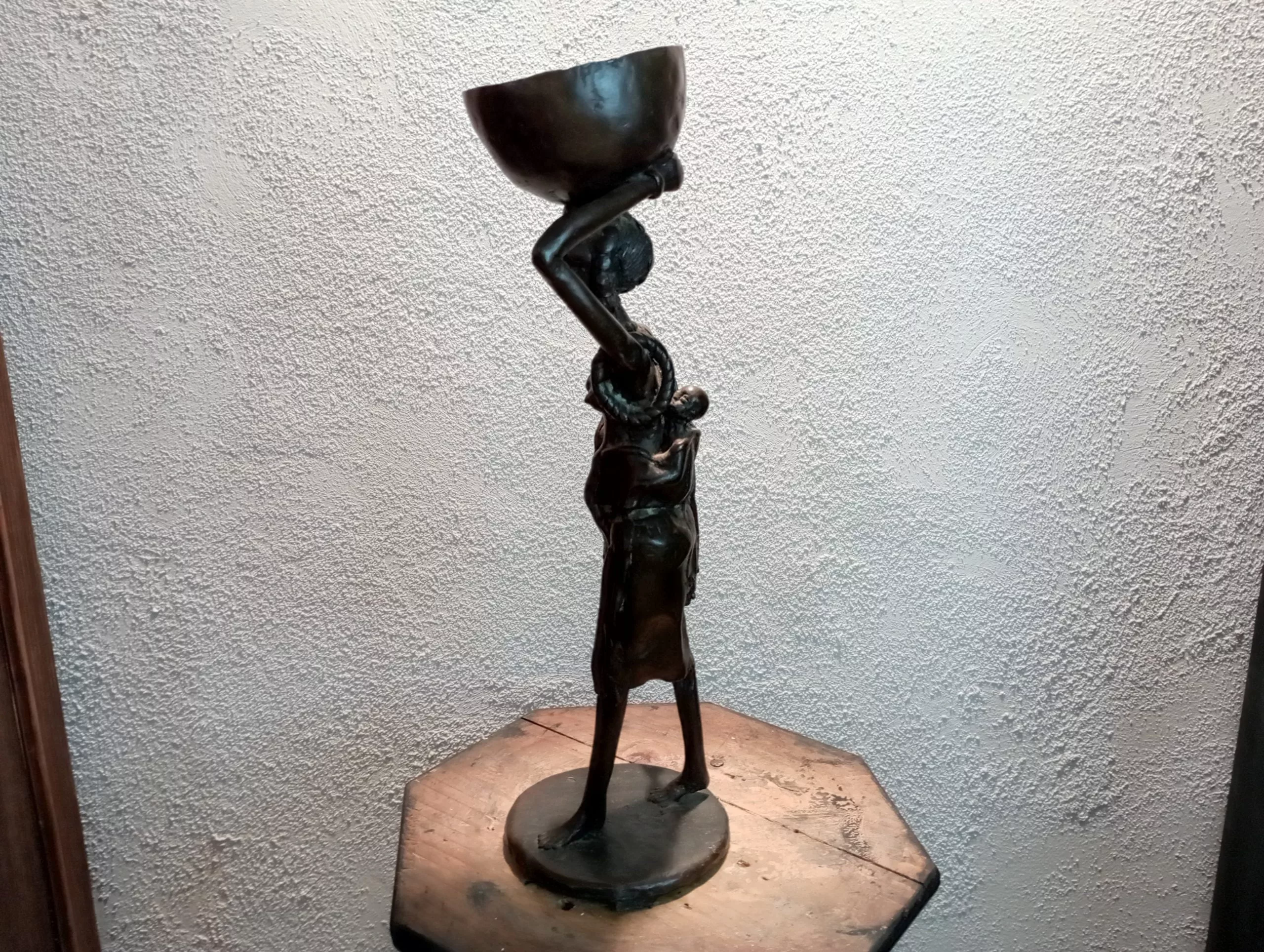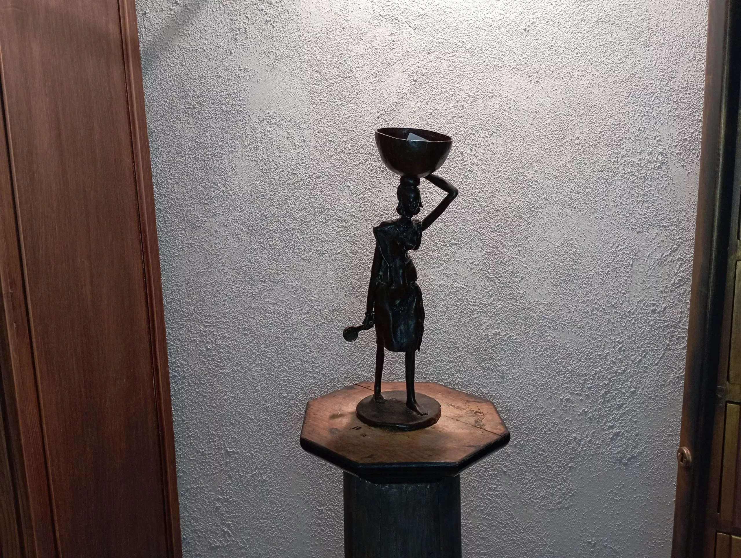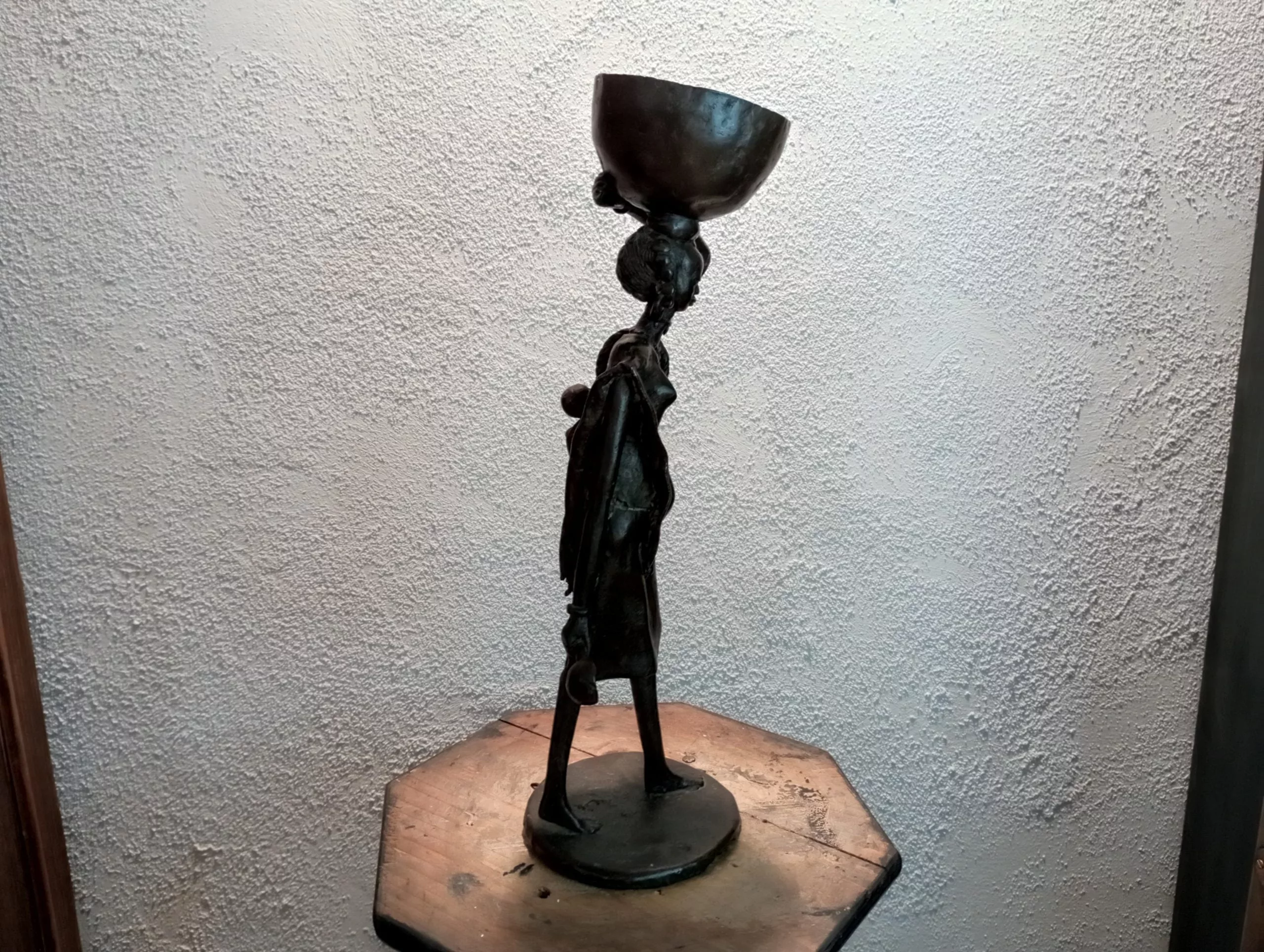 Portatrice d’Acqua, fusione in bronzo di provenienza africana, degli anni ’40, con splendidi dettagli e creata con la tecnica della cera persa.