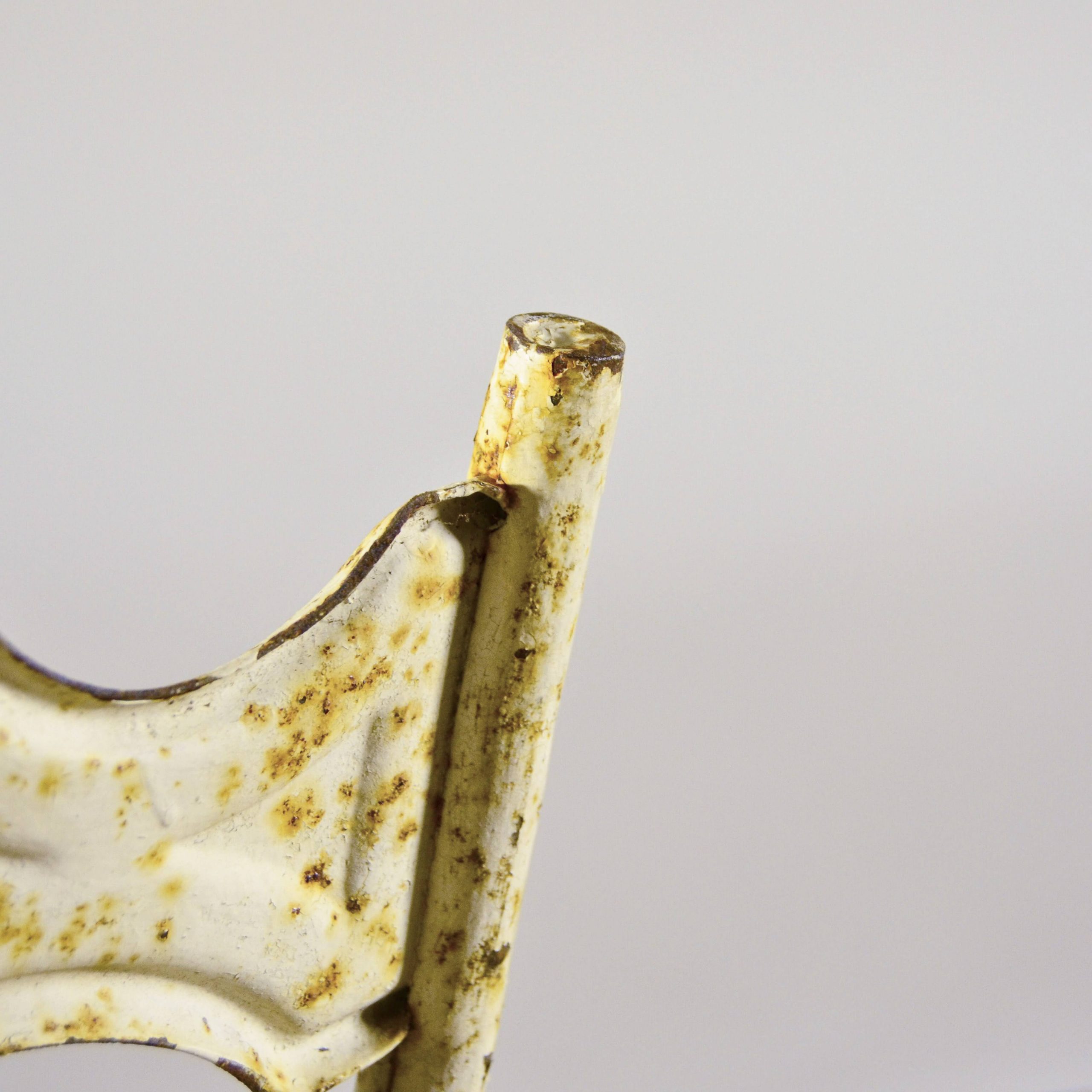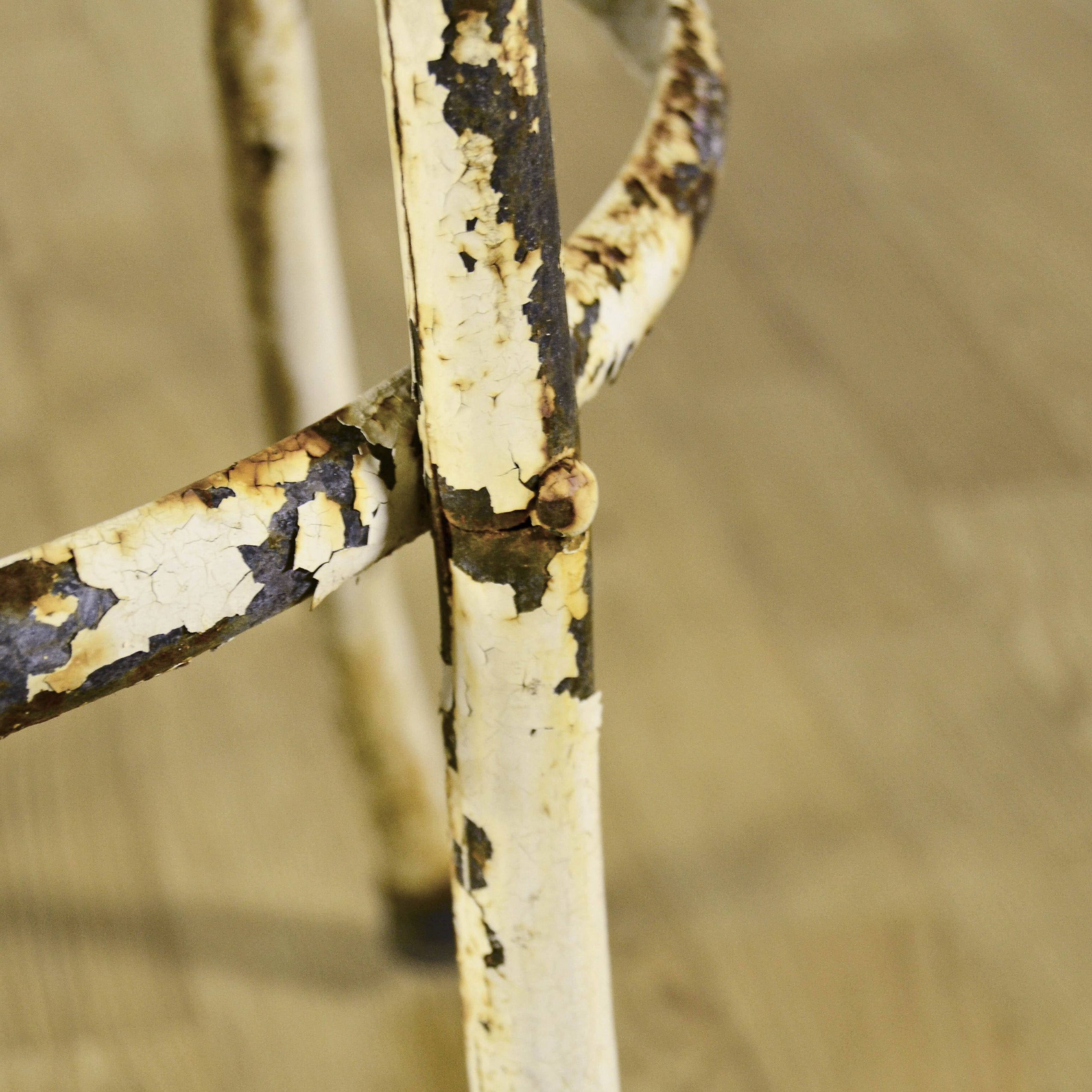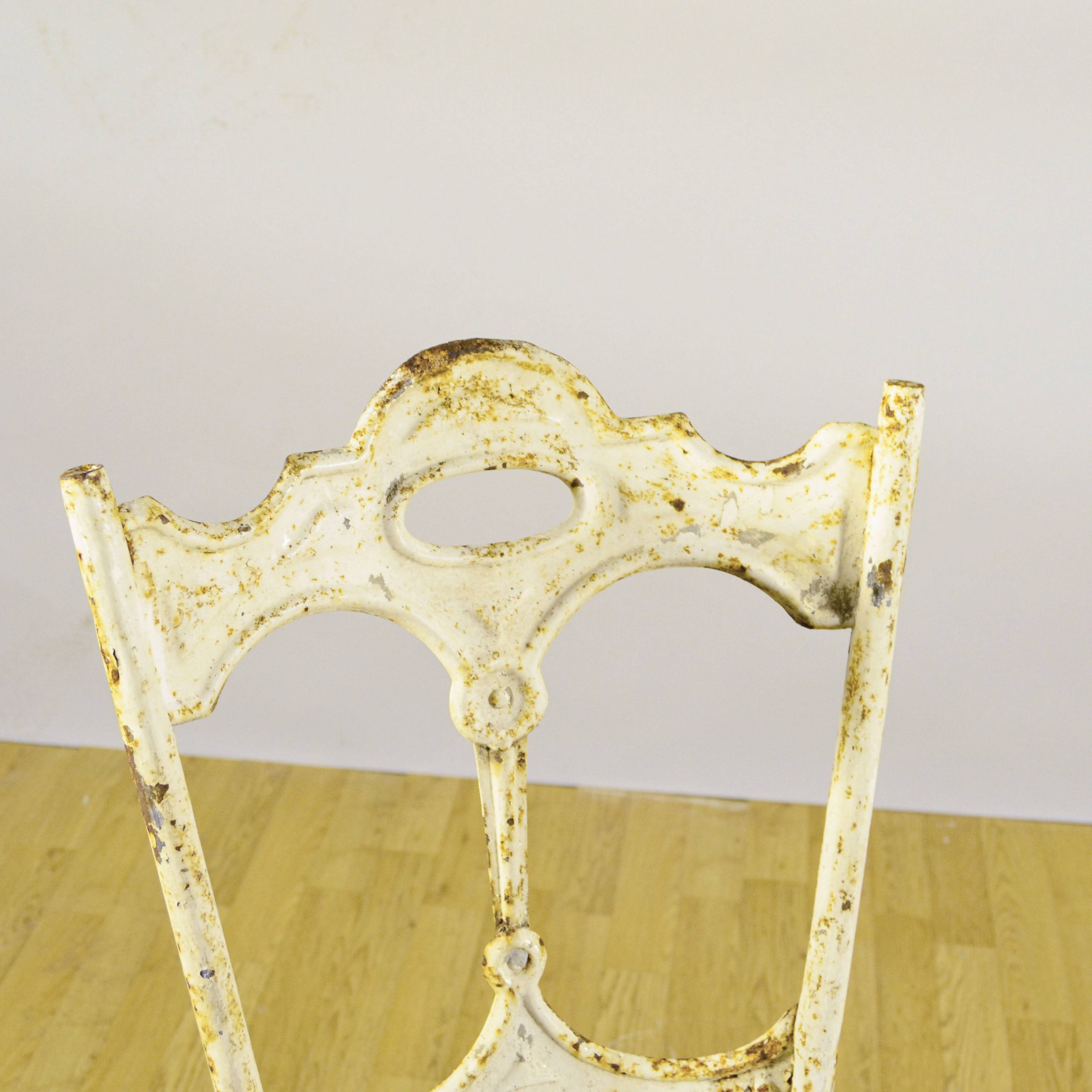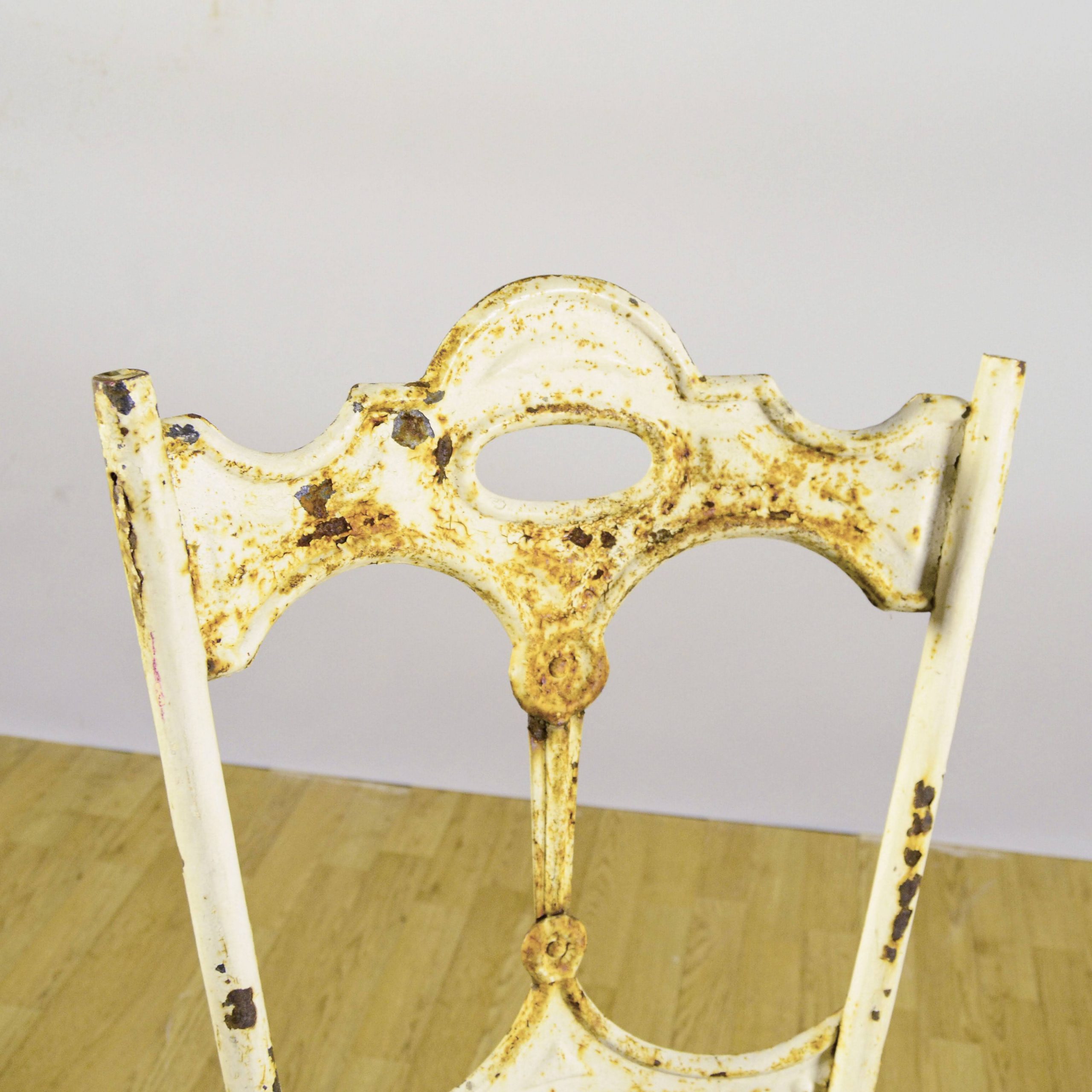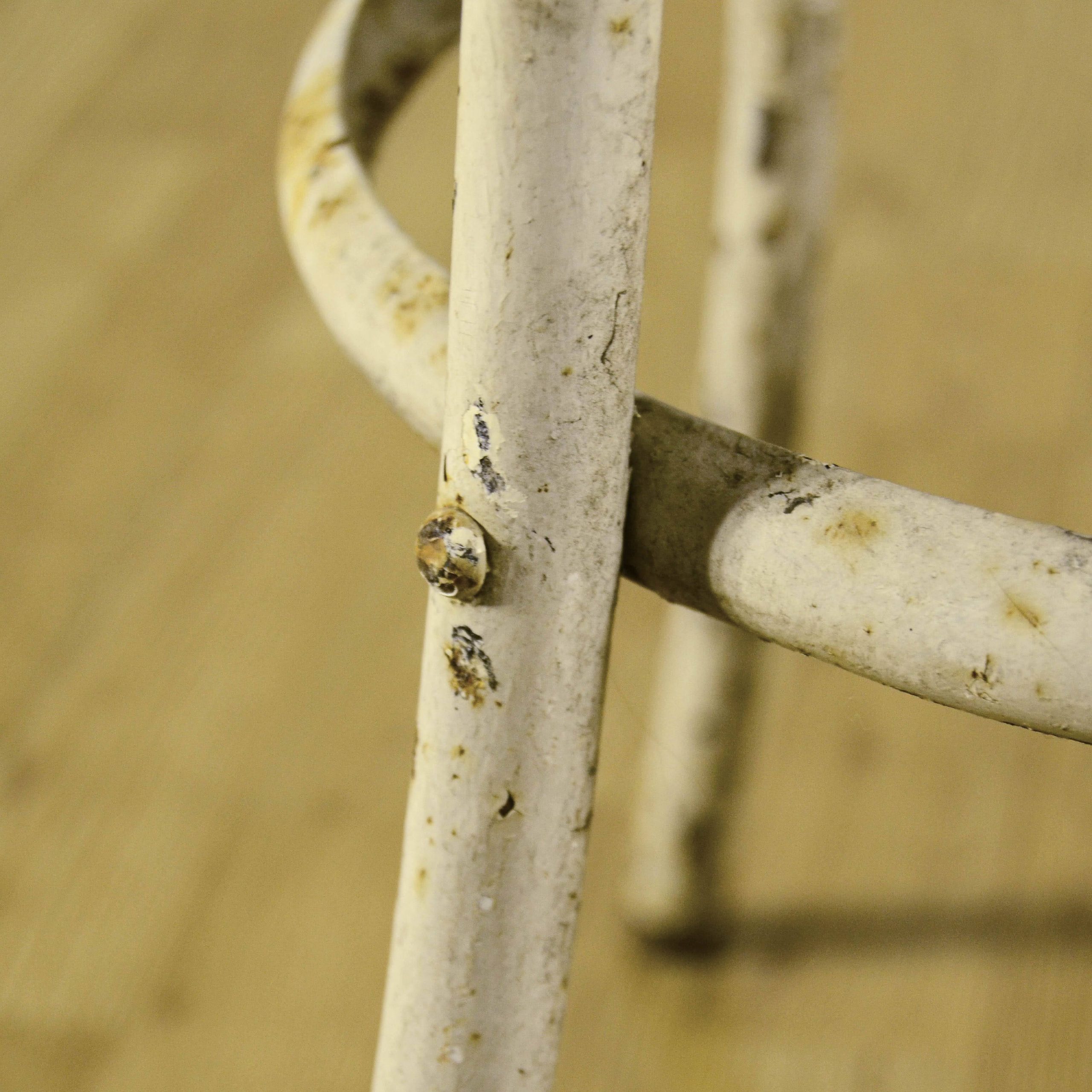 Coppia di sedie da giardino francesi dei primi ’900 realizzate in ferro verniciato bianco, con seduta traforata e schienale slanciato. La patina del tempo ne esalta il fascino autentico, rendendole perfette per giardini, terrazze o ambienti outdoor dal gusto vintage.