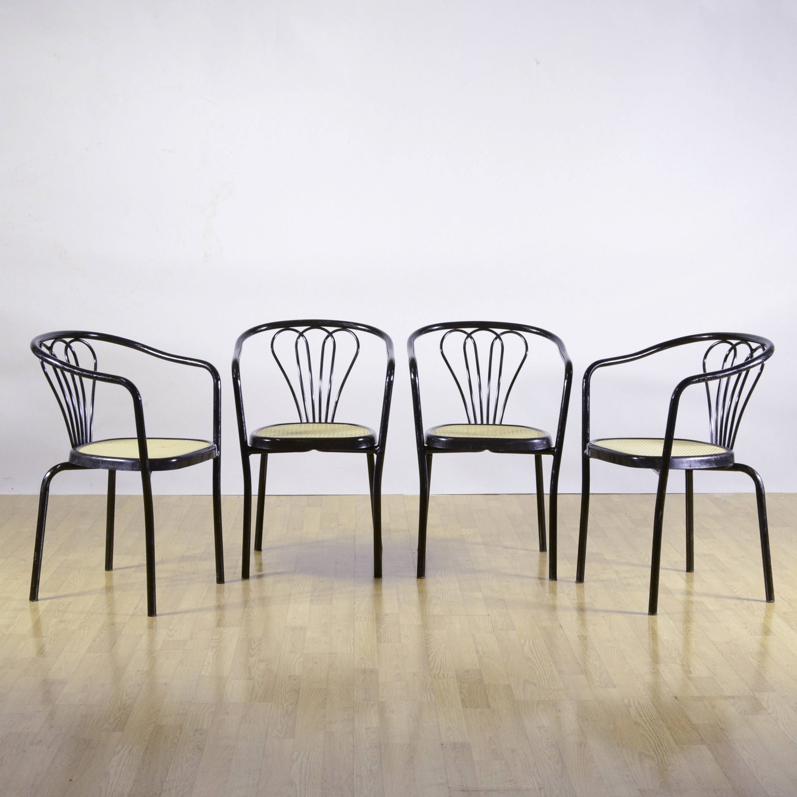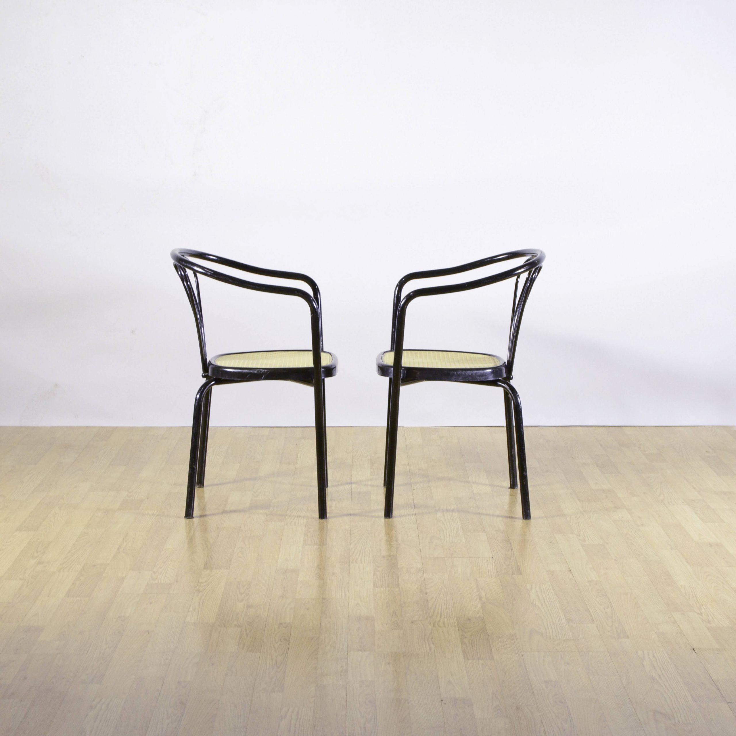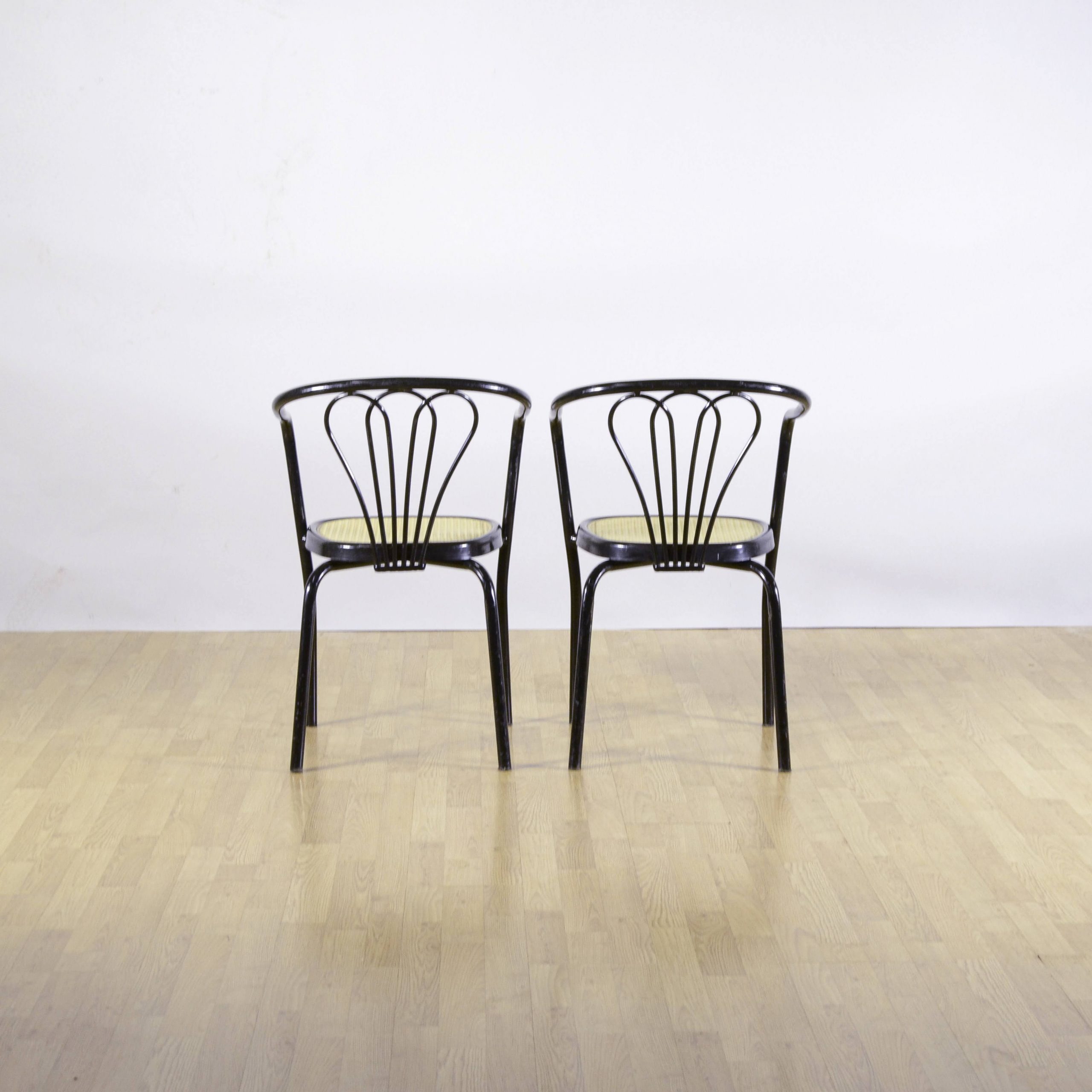 Set di sedie dal design essenziale con struttura in tubo d’acciaio verniciato nero e seduta in polipropilene. Le linee leggere e lo schienale dal profilo curvato donano carattere e comfort, rendendole adatte sia ad ambienti domestici sia a spazi contract.