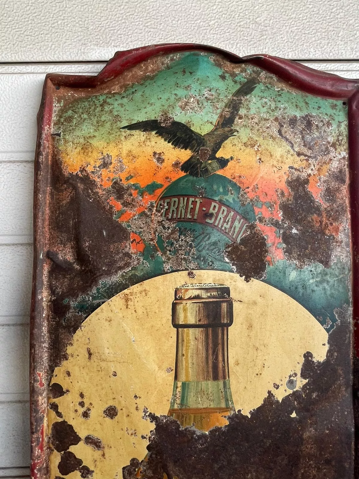 Targa Fernet Branca, del 1910, è una splendida targa pubblicitaria dalla forma elegante e tipica dei primi del ‘900 stile Liberty in discrete condizioni.