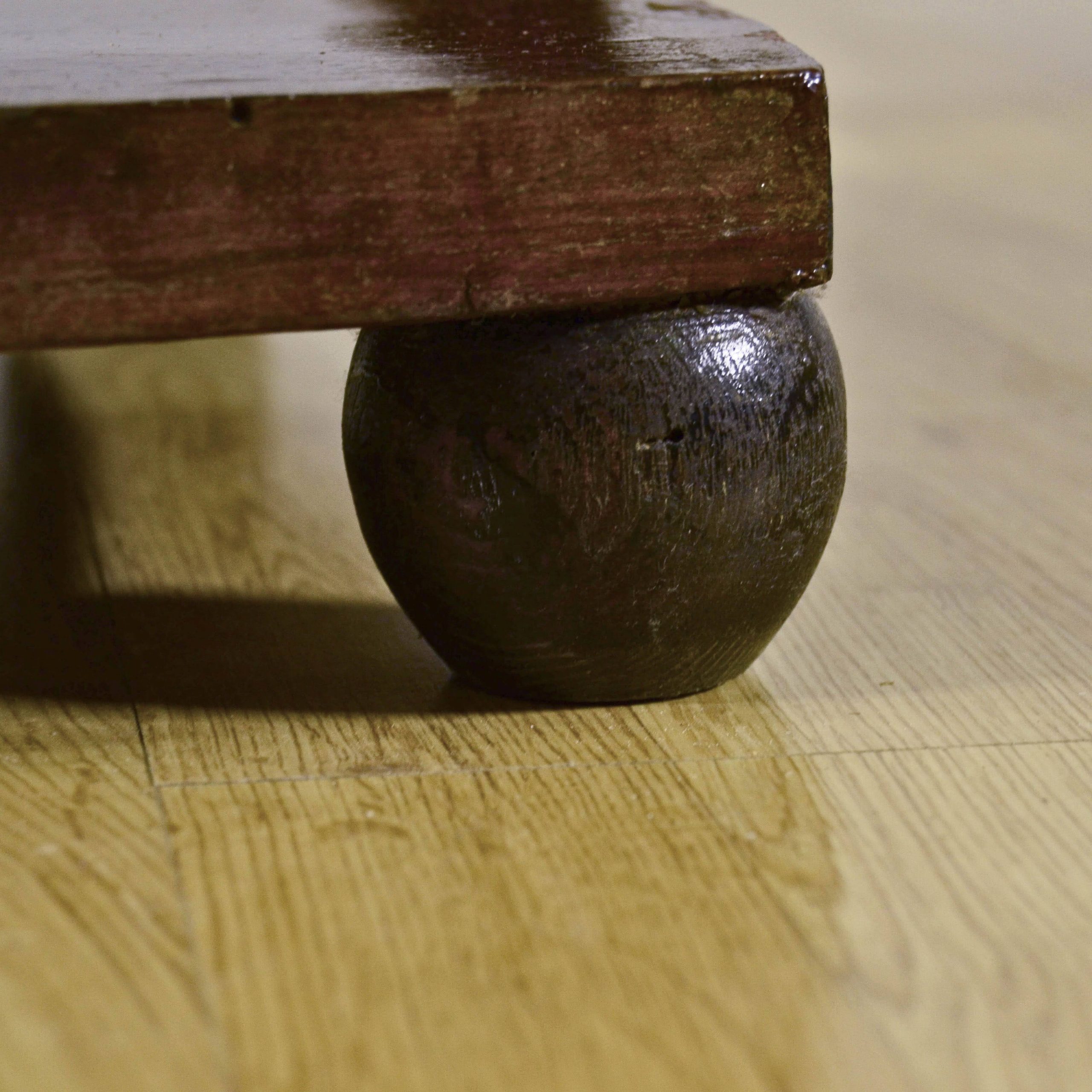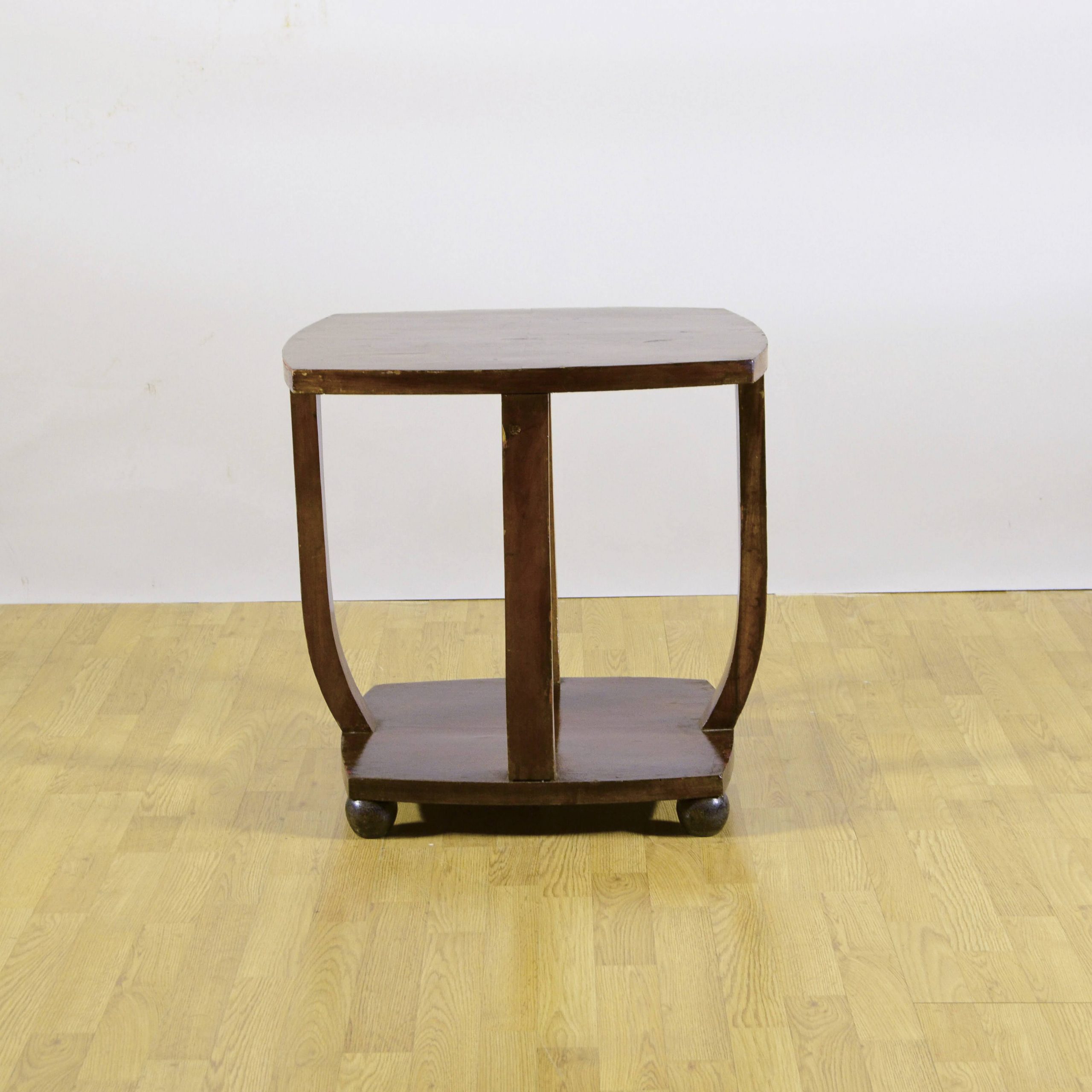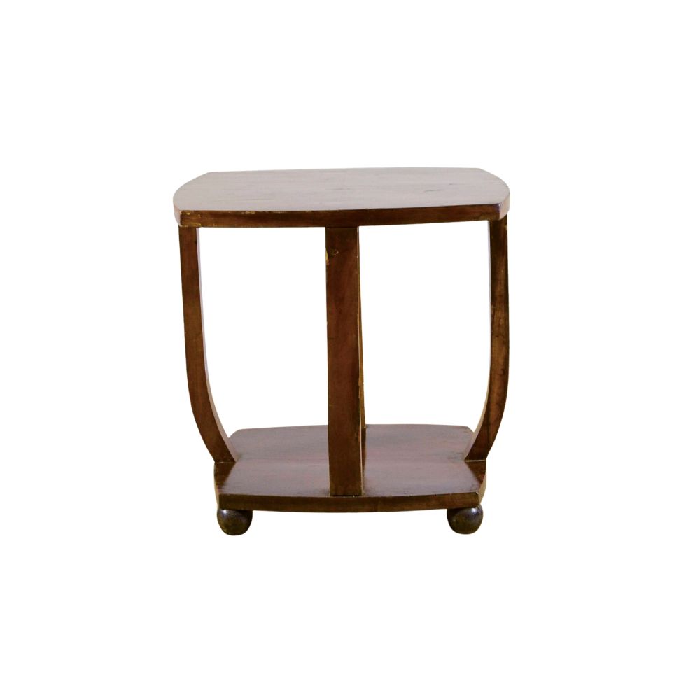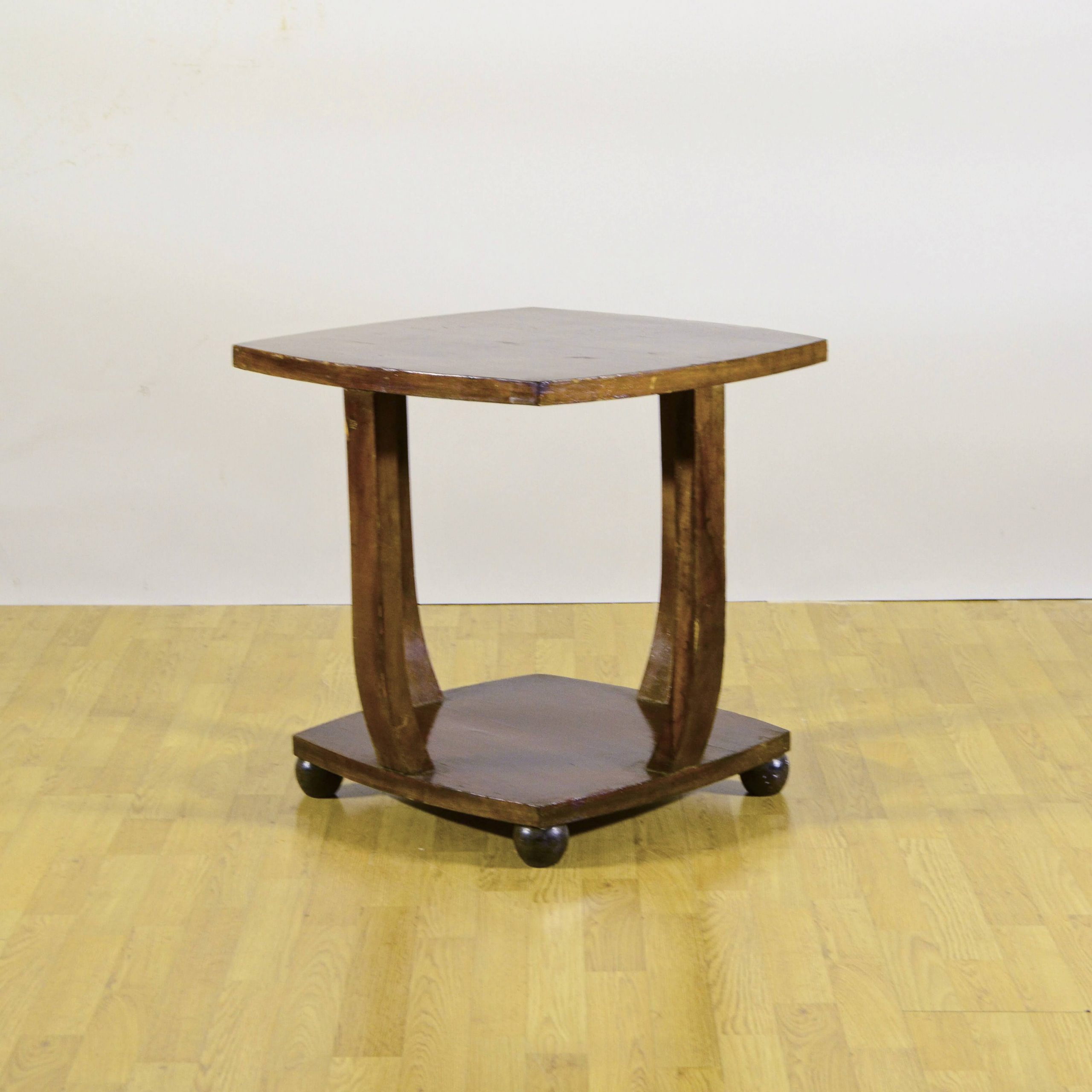 Tavolino da salotto dei primi ’900 in legno massello, caratterizzato da piano quadrato, struttura robusta e base sagomata con piedi a sfera. Un complemento d’arredo dal fascino d’epoca, perfetto per ambienti classici o vintage.