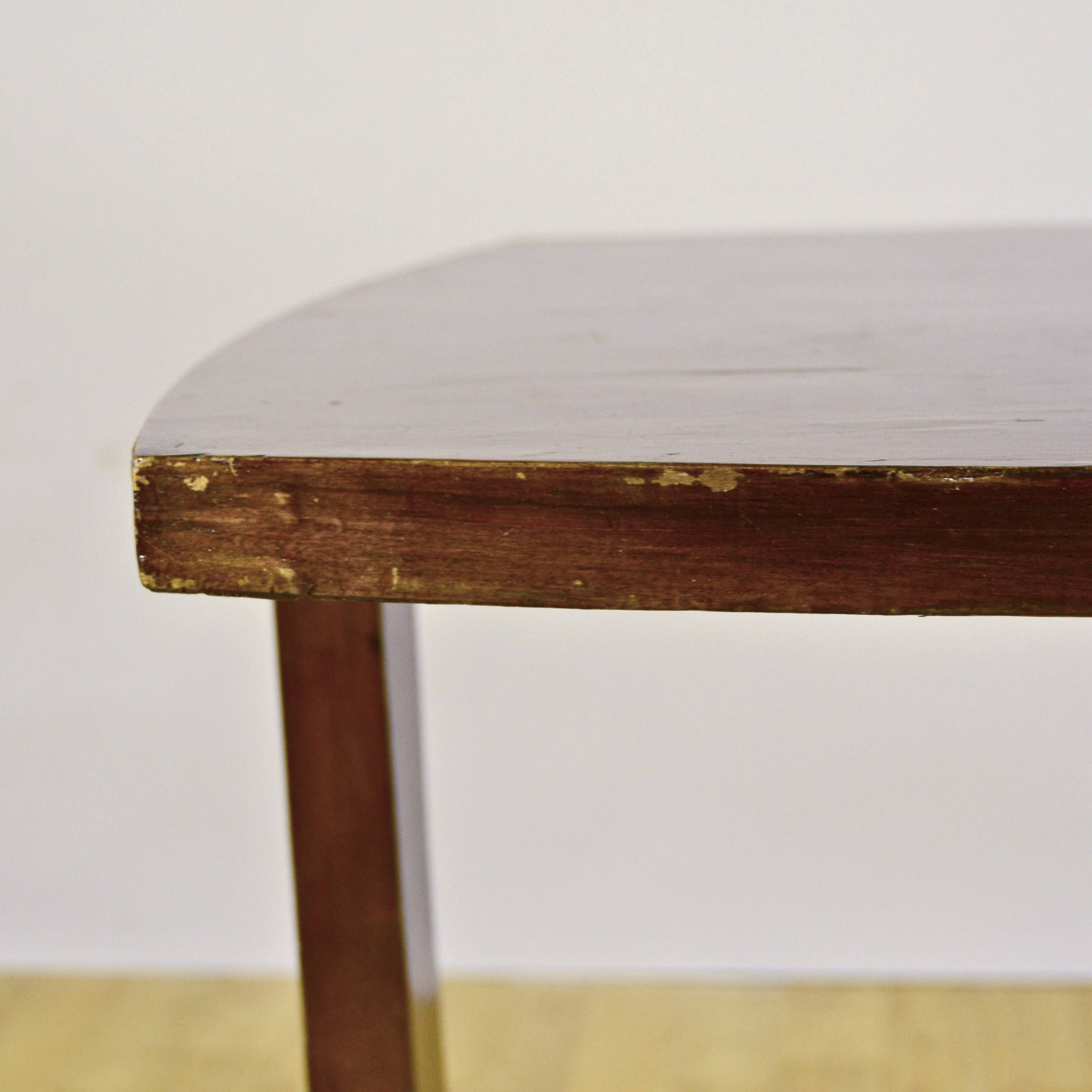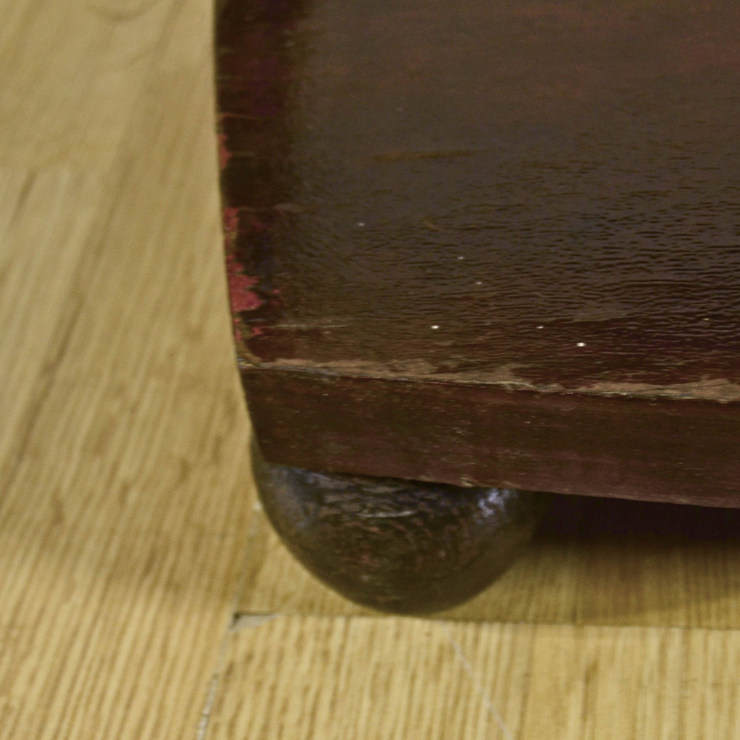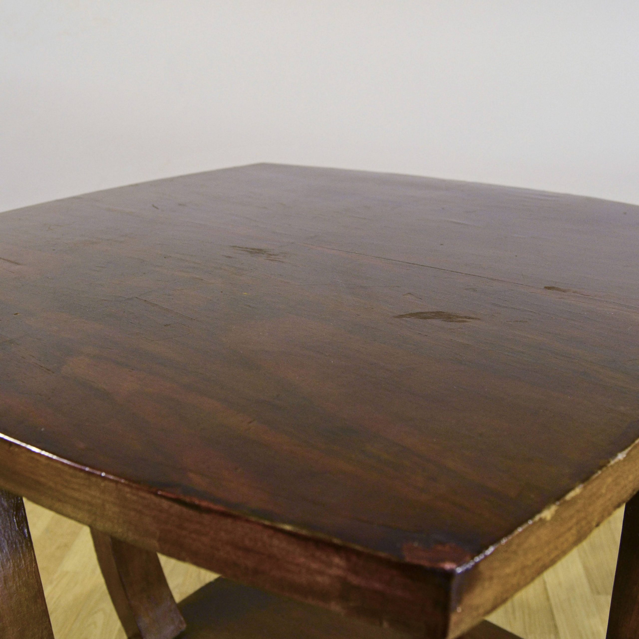 Tavolino da salotto dei primi ’900 in legno massello, caratterizzato da piano quadrato, struttura robusta e base sagomata con piedi a sfera. Un complemento d’arredo dal fascino d’epoca, perfetto per ambienti classici o vintage.