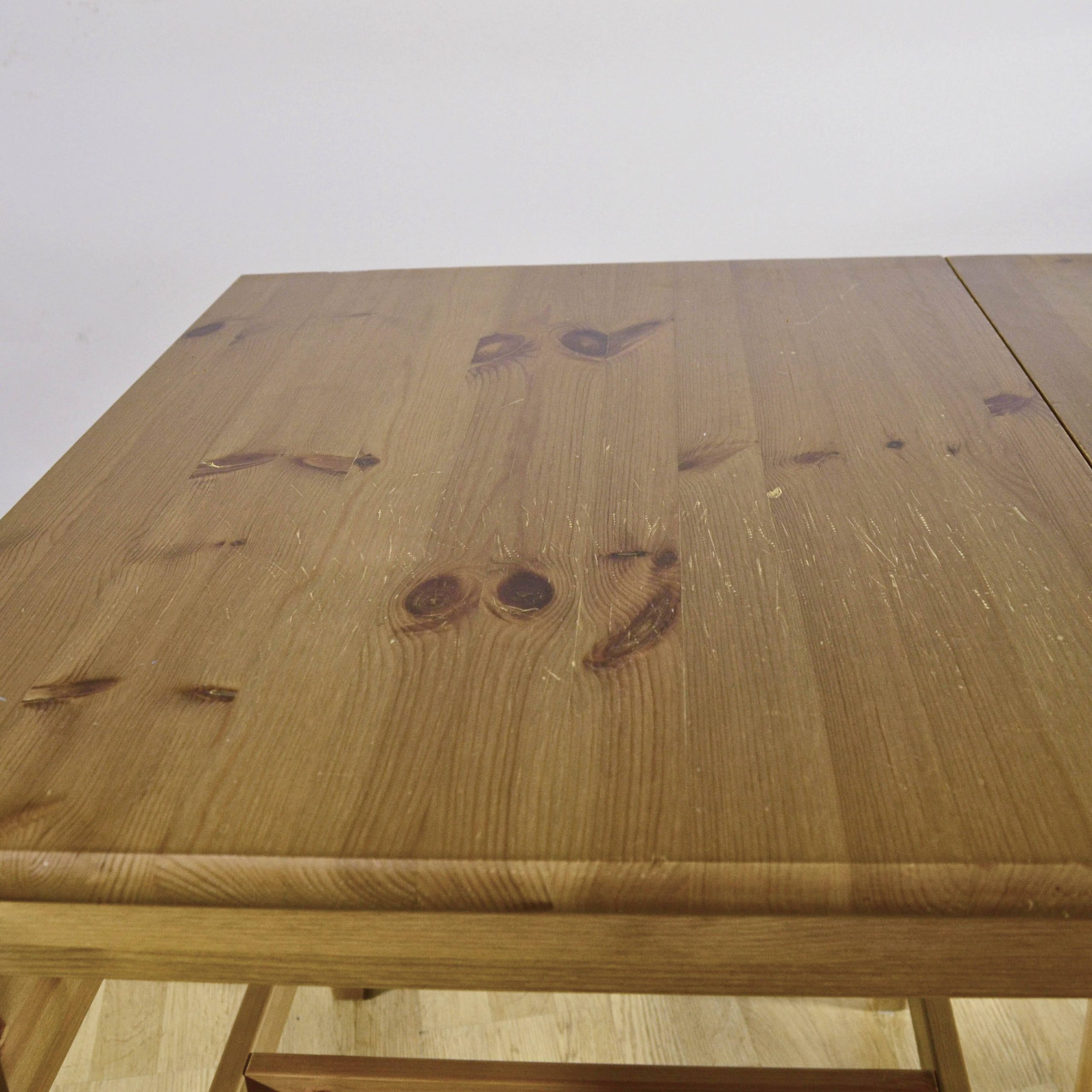 Tavolino allungabile di produzione svedese dal design essenziale e funzionale, adatto da 2 a 4 persone. Realizzato in legno con linee pulite, rappresenta una soluzione pratica e versatile per cucina o piccoli spazi contemporanei.
