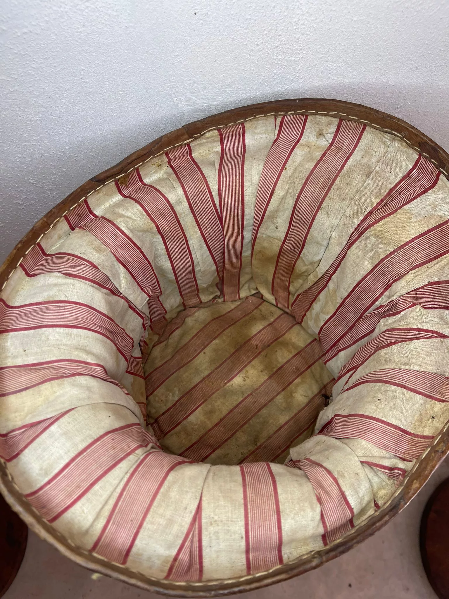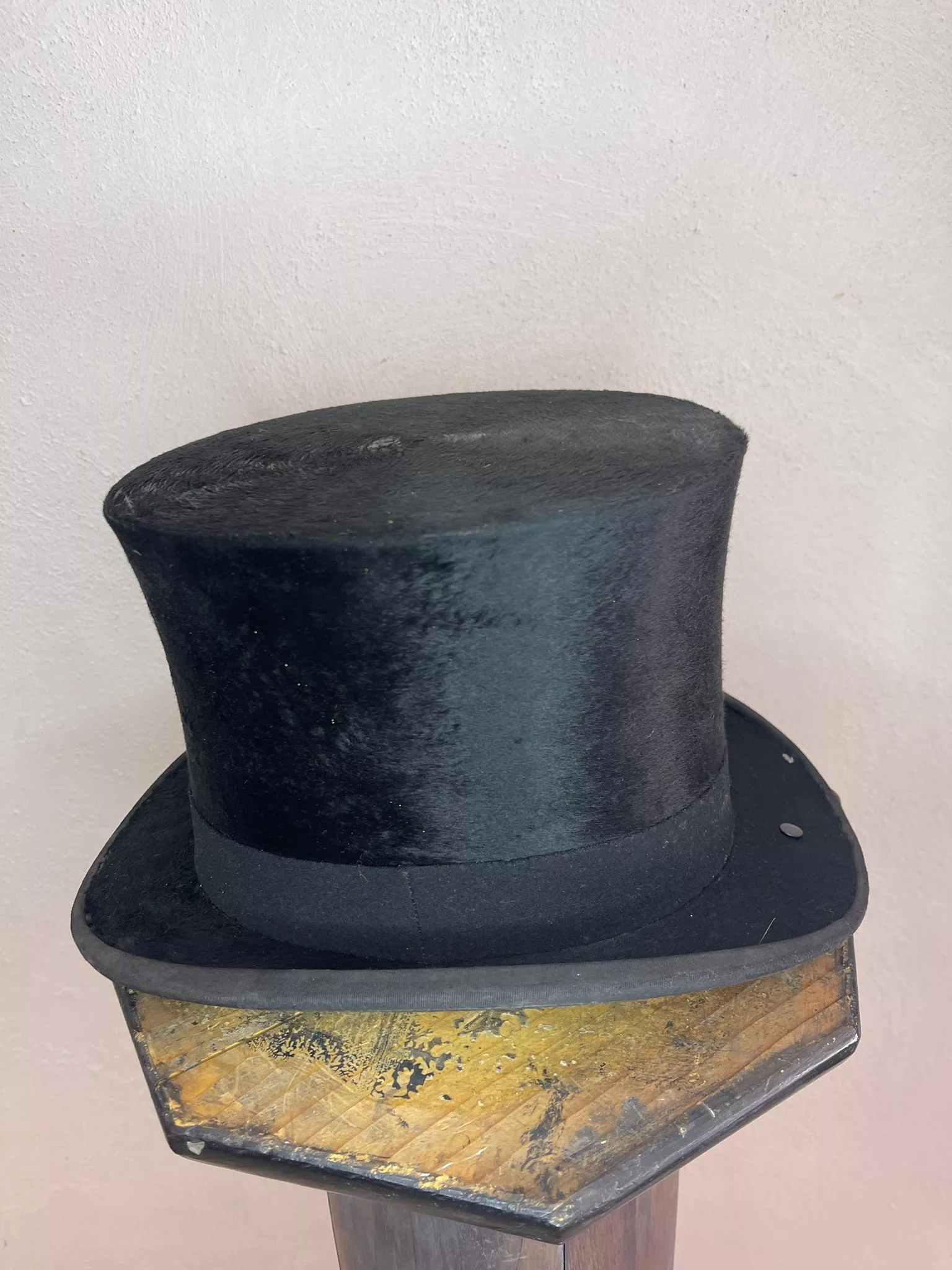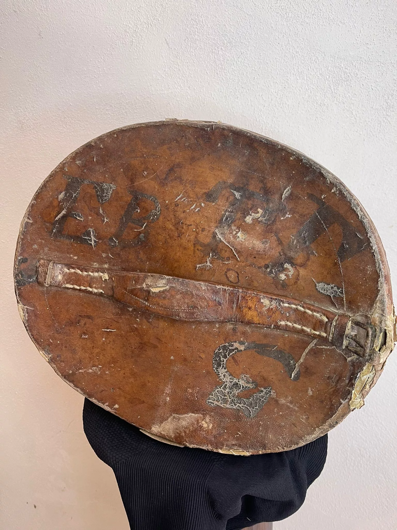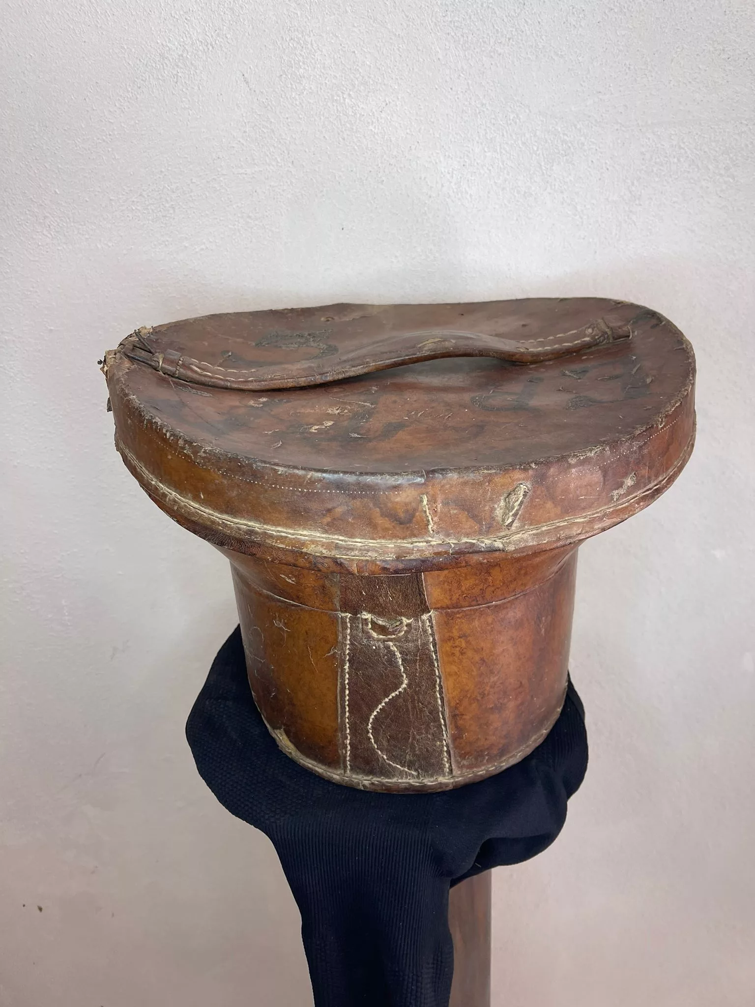 Vecchia Cappelliera porta tuba, realizzata nel 1880 circa, in cuoio e con la sua tuba da donna in perfette condizioni, è un pezzo da esposizione.