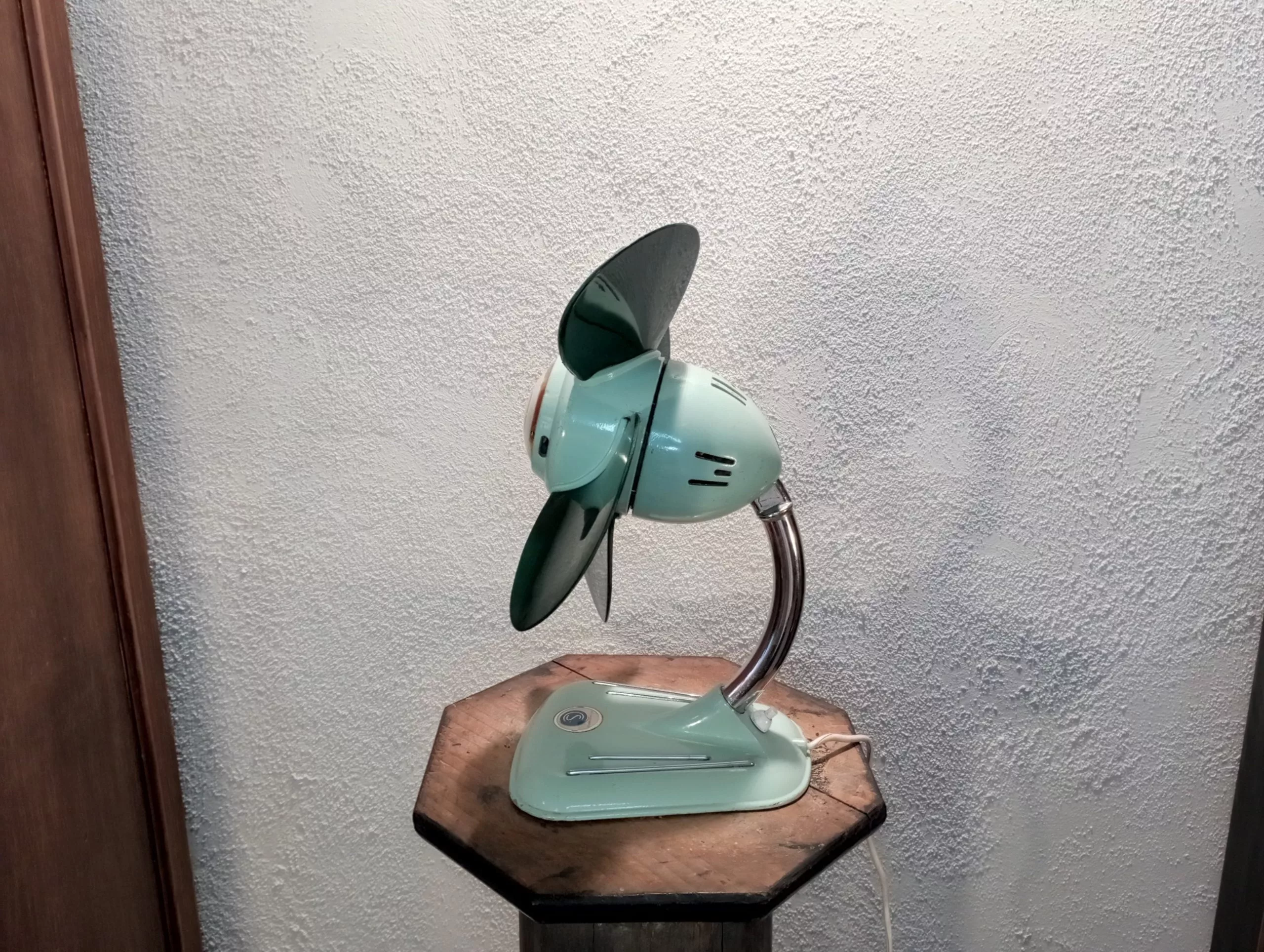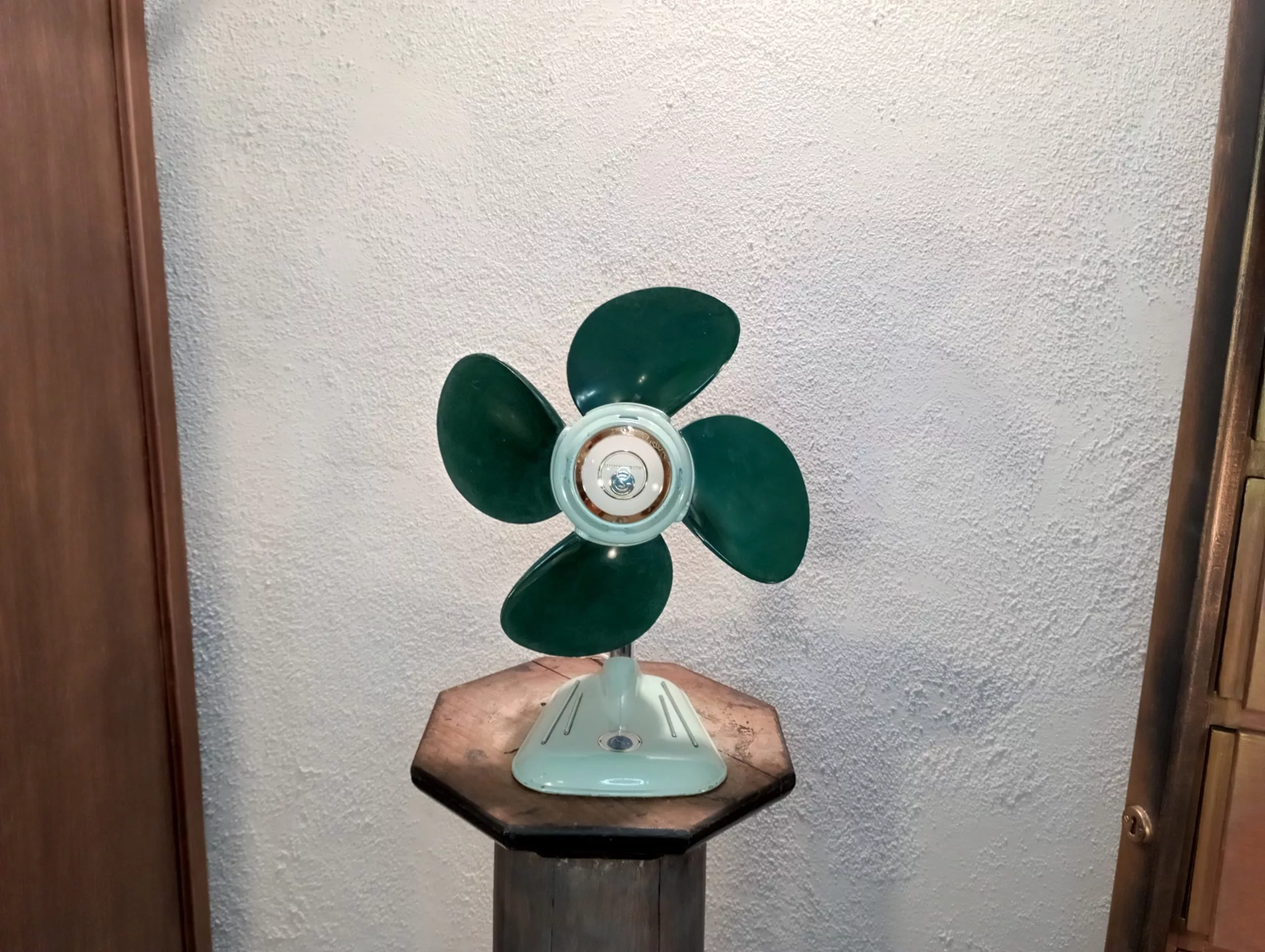 Ventilatore S. Giorgio degli Anni ’40 in perfettamente funzionante con i suoi 125 volt e in ottimo stato con i suoi colori tenui dell’epoca da cui proviene.